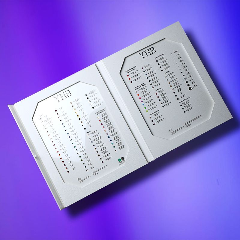 Работа с блеском требует точности. Один и тот же аксессуар в цвете Siam или Ruby может восприниматься совершенно по-разному в зависимости от подтона, материала основы и даже освещения. Именно поэтому карта цветов страз — не просто удобный инструмент, а необходимая часть процесса выбора. Без неё дизайнер словно рисует вслепую: он может угадать, но не увидеть настоящего результата. Палитра помогает раскрыть замысел, точно определить, какой эффект будет производить изделие при движении, под светом прожектора или в естественном освещении.