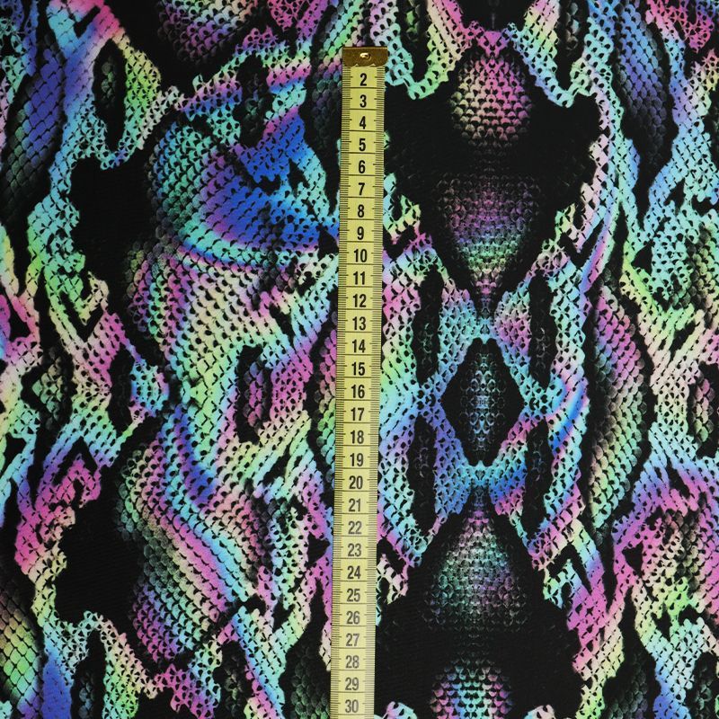 Эта ткань создана для тех, кто знает цену движению. Высокая плотность полотна, эластичность во всех направлениях, мягкость и упругая структура — всё это делает трикотажное полотно на основе полиэстера и эластана настоящей находкой для пошива купальников, костюмов, леггинсов, а иногда и цельных сценических нарядов. Благодаря сочетанию плотной посадки и ярких принтов ткань не просвечивает, даже в растянутом виде, оставаясь визуально целостной. Это особенно важно при работе с крупными узорами, клеткой, полосками и абстрактными мотивами, где требуется чёткая геометрия. Кроме того, Friedman отлично справляется с изгибами и объёмами: материал не деформируется, не даёт пузырей, не искажает пропорции изделия.
