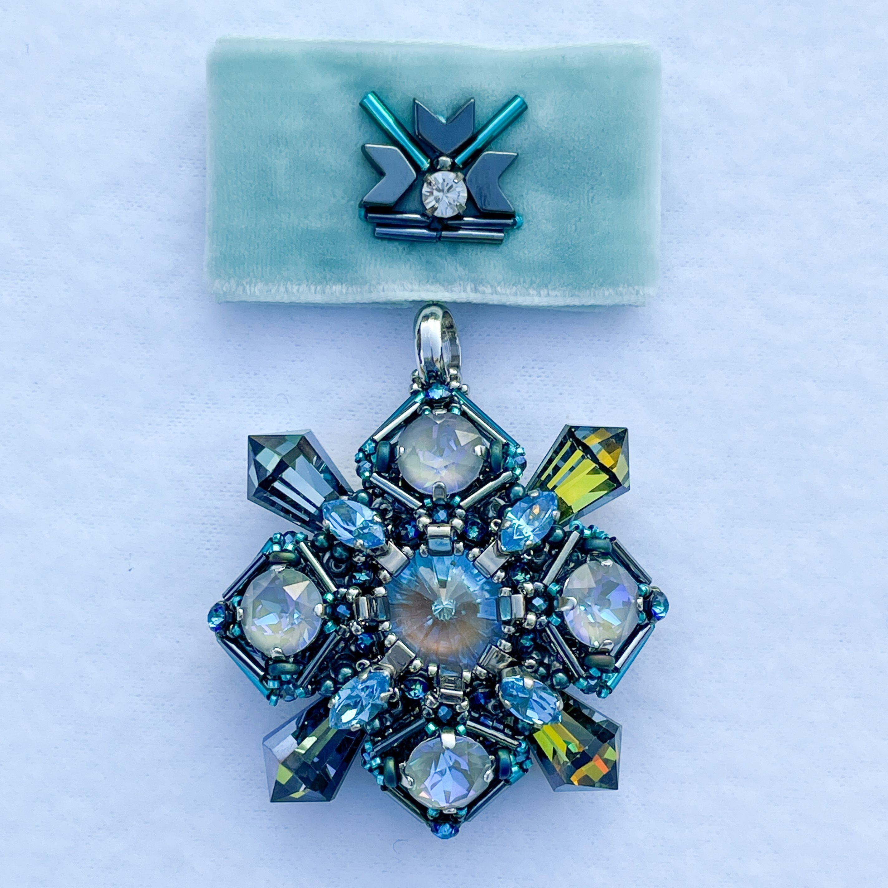 У украшения нет изнанки, - вместо кожи, замши, бархата или фетра задняя часть также усыпана кристаллами! Двусторонний орден - ни что иное, как доказательство любви к непревзойденному свету кристаллов!