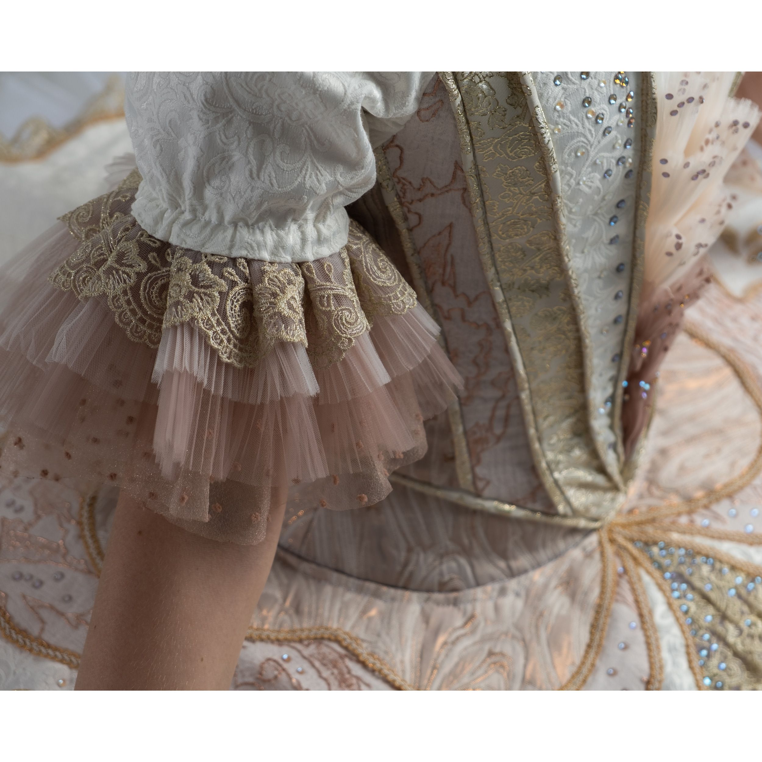 Все мы – дети, когда любим. Все мы – дети, когда радуемся. «Будьте чисты как дети» - гласит библейская истина. Мотивами христианской любви пронизан классический балет – многие заглавные партии классического наследия несут в себе высокие идеи о верности и справедливости, победе добра над злом и Света над Тьмой, нерушимости обетов. Пачка «Высокое чувство» поможет создать образ героини, воплощающей в себе всю глубину кристально чистой любви (например, партия Авроры из балета «Спящая красавица»), а сияние страз Swarovski ещё и ещё раз покажет, как блистателен человек, исполненный любви.