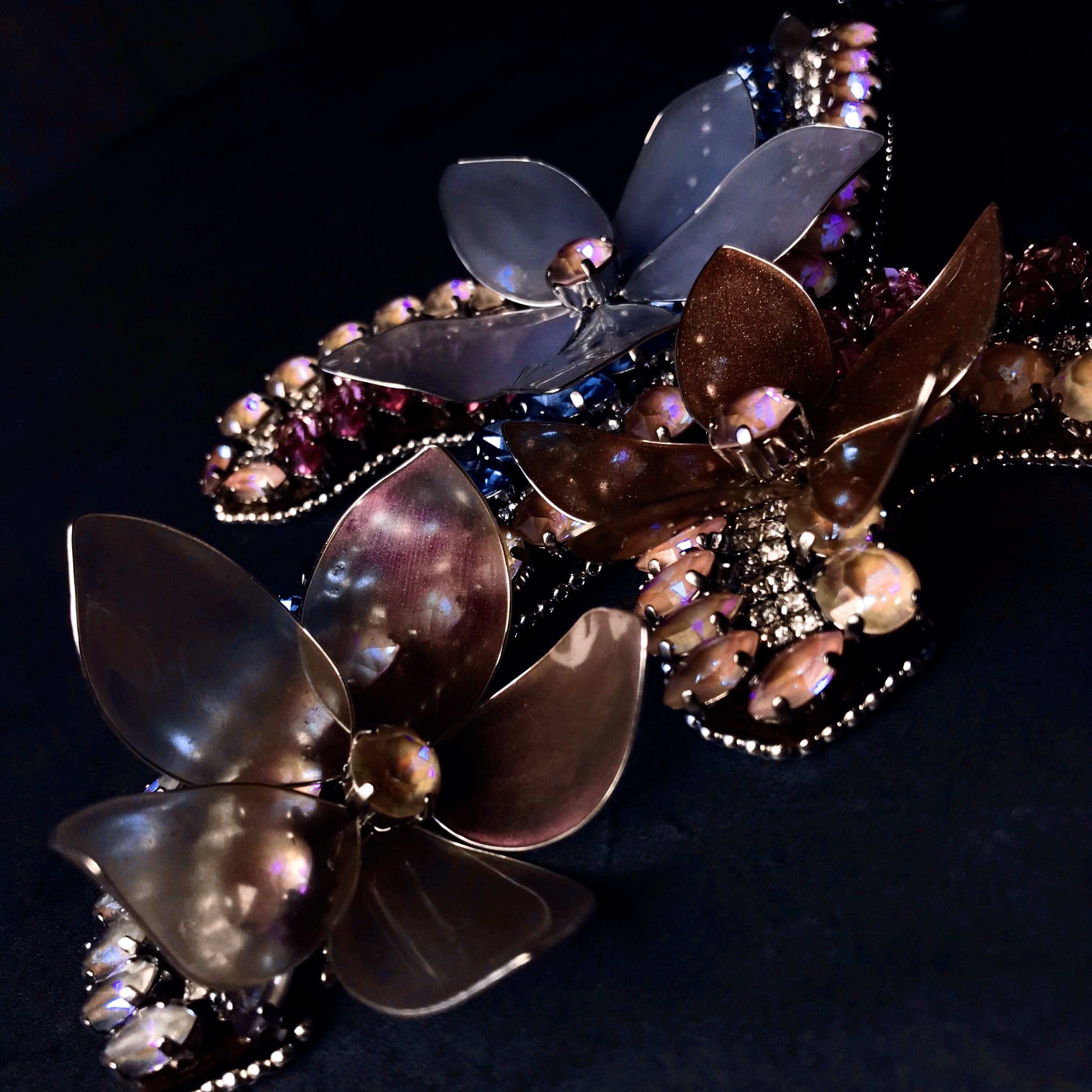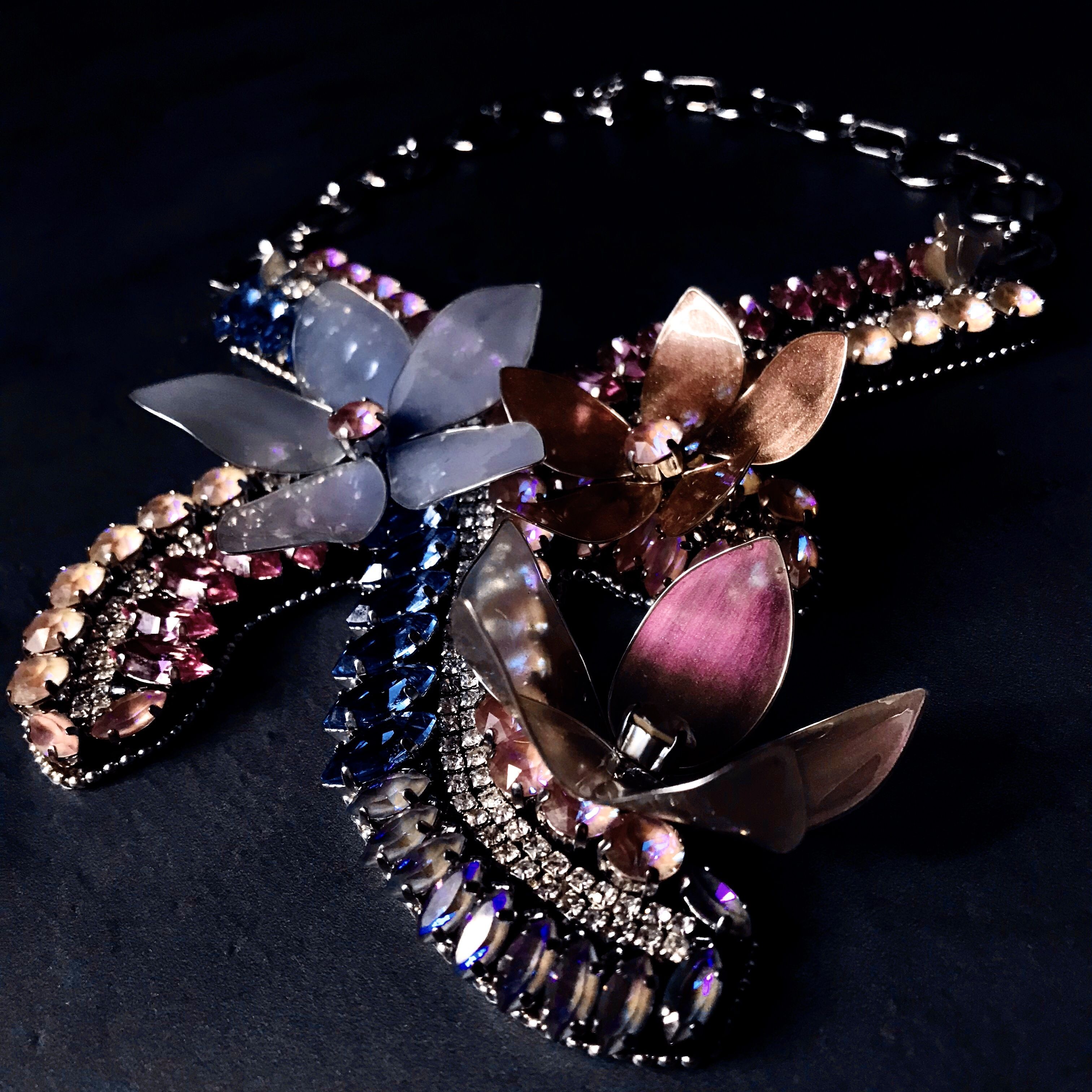 Идеей создания этого колье я обязана последней коллекции Сваровски. Увидев цветовую палитру, в голове почти сразу возник образ утренней зари.