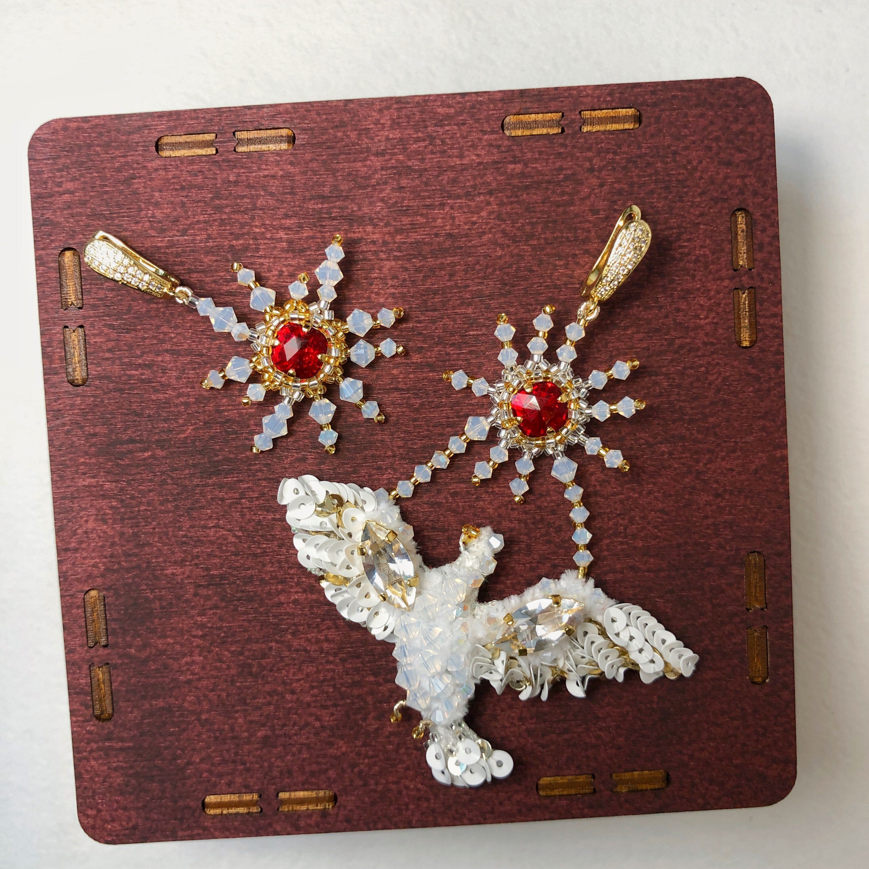 Тема конкурса "Crystal Love" в моем исполнении зазвучала плененной белой птицей, застывшей под кристальным солнцем и мечтающей о свободном полете. Работая над эскизом, выплетая и вышивая элементы конкурсной работы я слушала каверы на песню ДДТ "Песня о свободе", которая во многом и вдохновила меня на создание именно этой работы. Очаровывающий блеск кристаллов, который манит и пленяет.