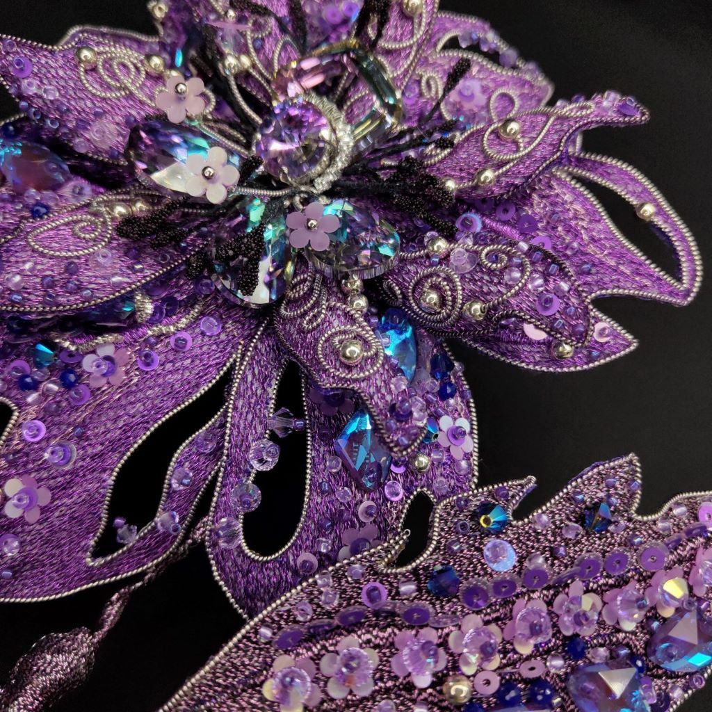 Брошь размеры - 17х14 см, выполнена в техники вышивки металлизированными нитями.