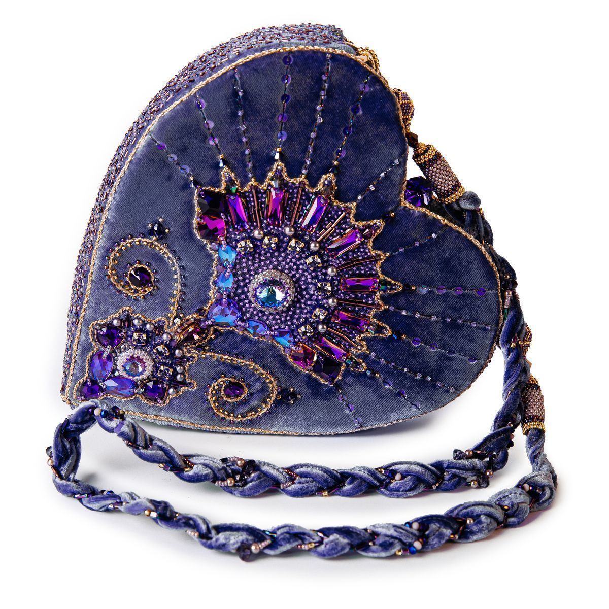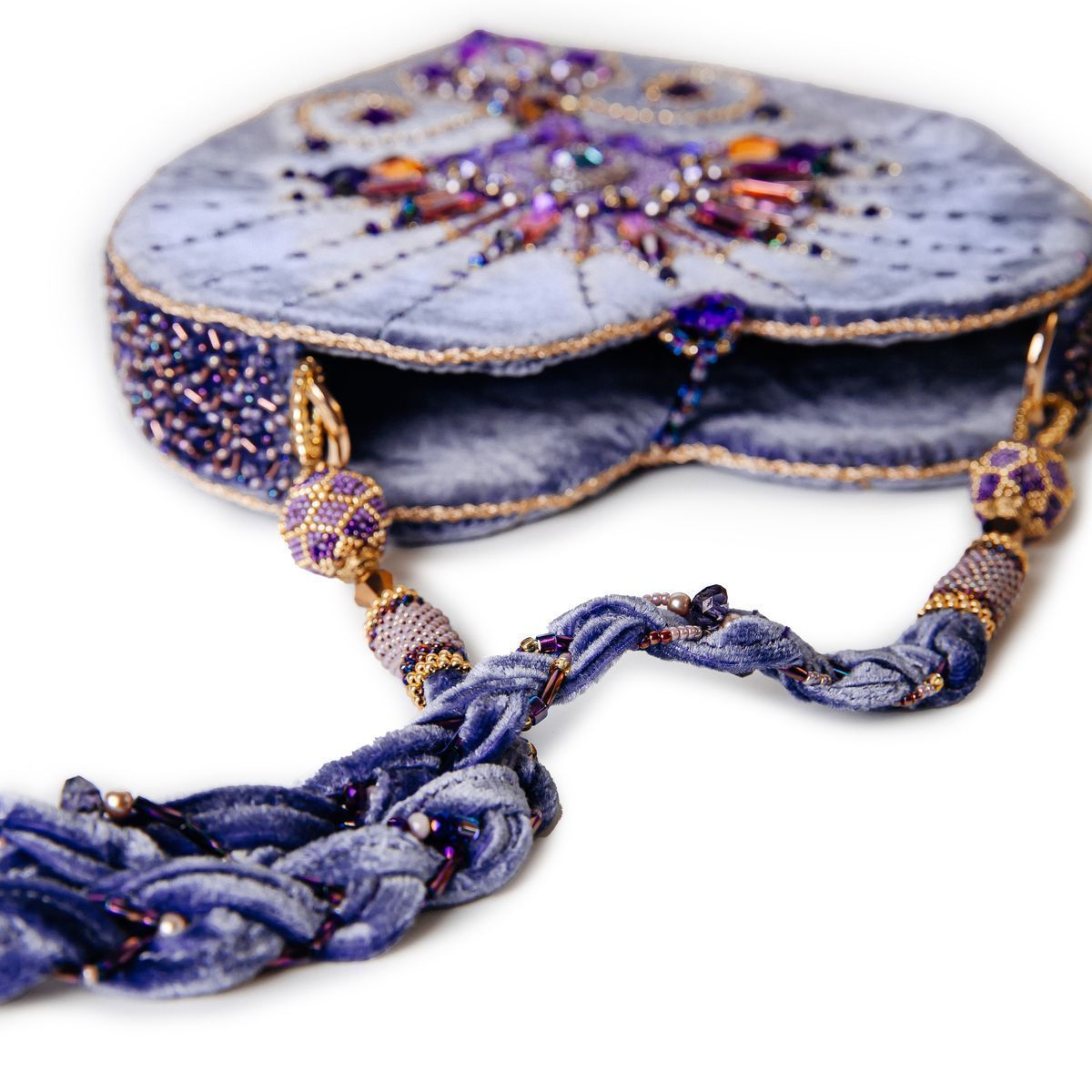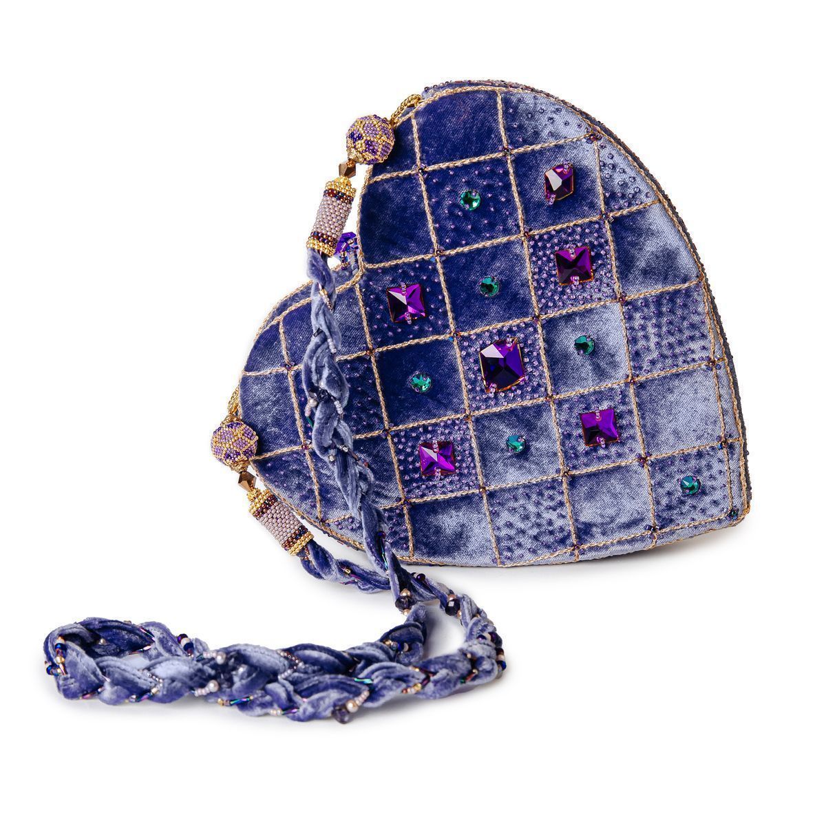 В сумочке «.evoli в моём сердце» кристаллы от .evoli собрались в один благоухающий цветок, который расцвёл на бархатном сердце, чтобы донести все нюансы цветовых оттенков лавандовых полей, запахи множества мелких цветочков сирени и тепло сказочного благоухания роз.