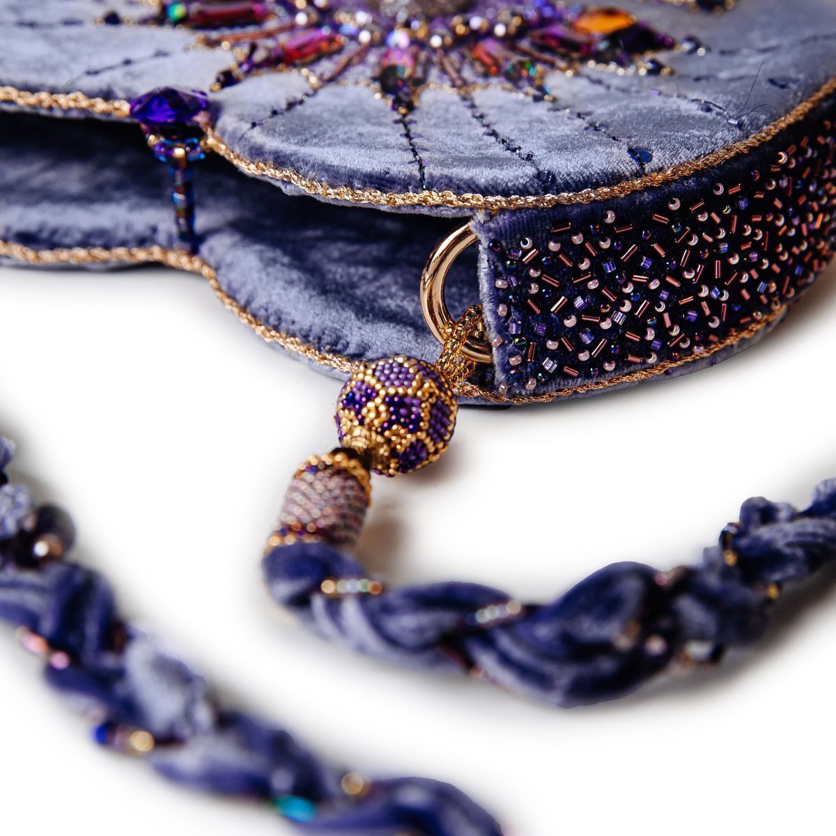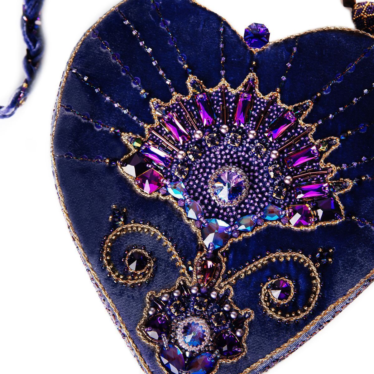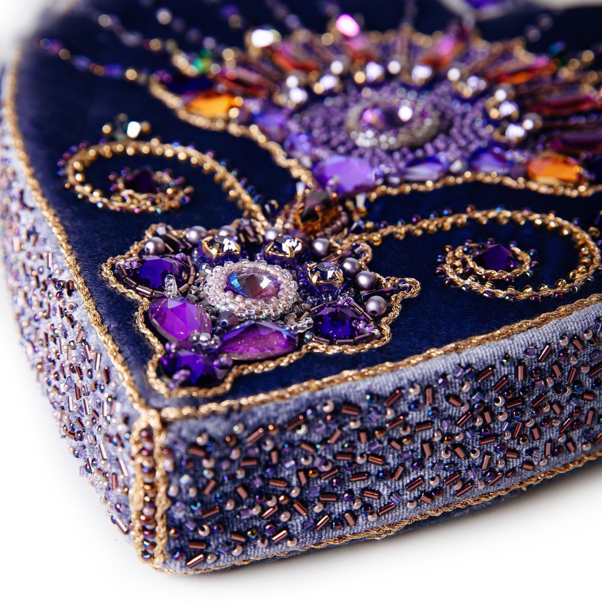 В сумочке «.evoli в моём сердце» кристаллы от .evoli собрались в один благоухающий цветок, который расцвёл на бархатном сердце, чтобы донести все нюансы цветовых оттенков лавандовых полей, запахи множества мелких цветочков сирени и тепло сказочного благоухания роз.