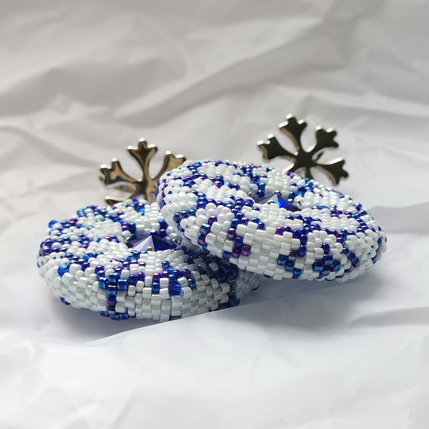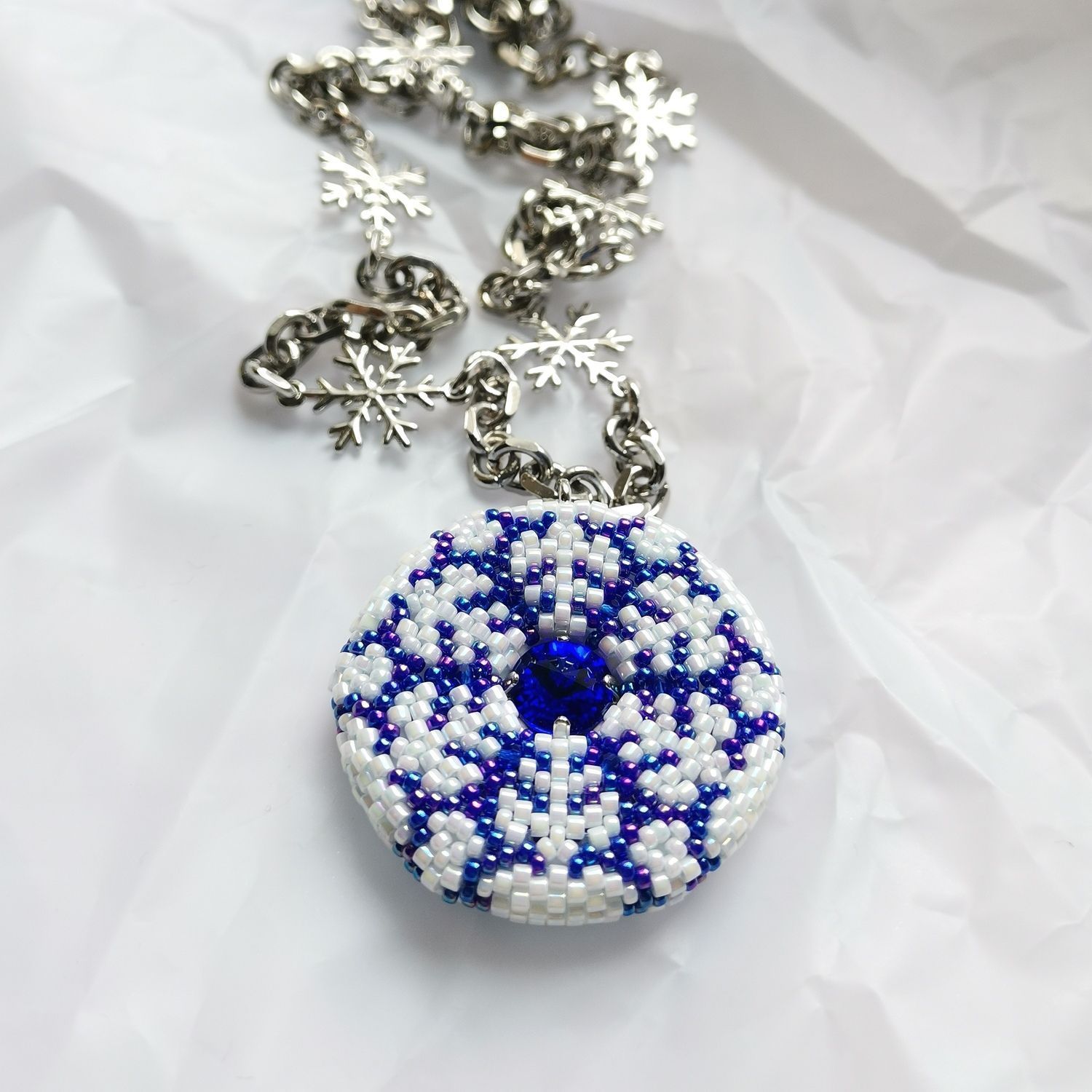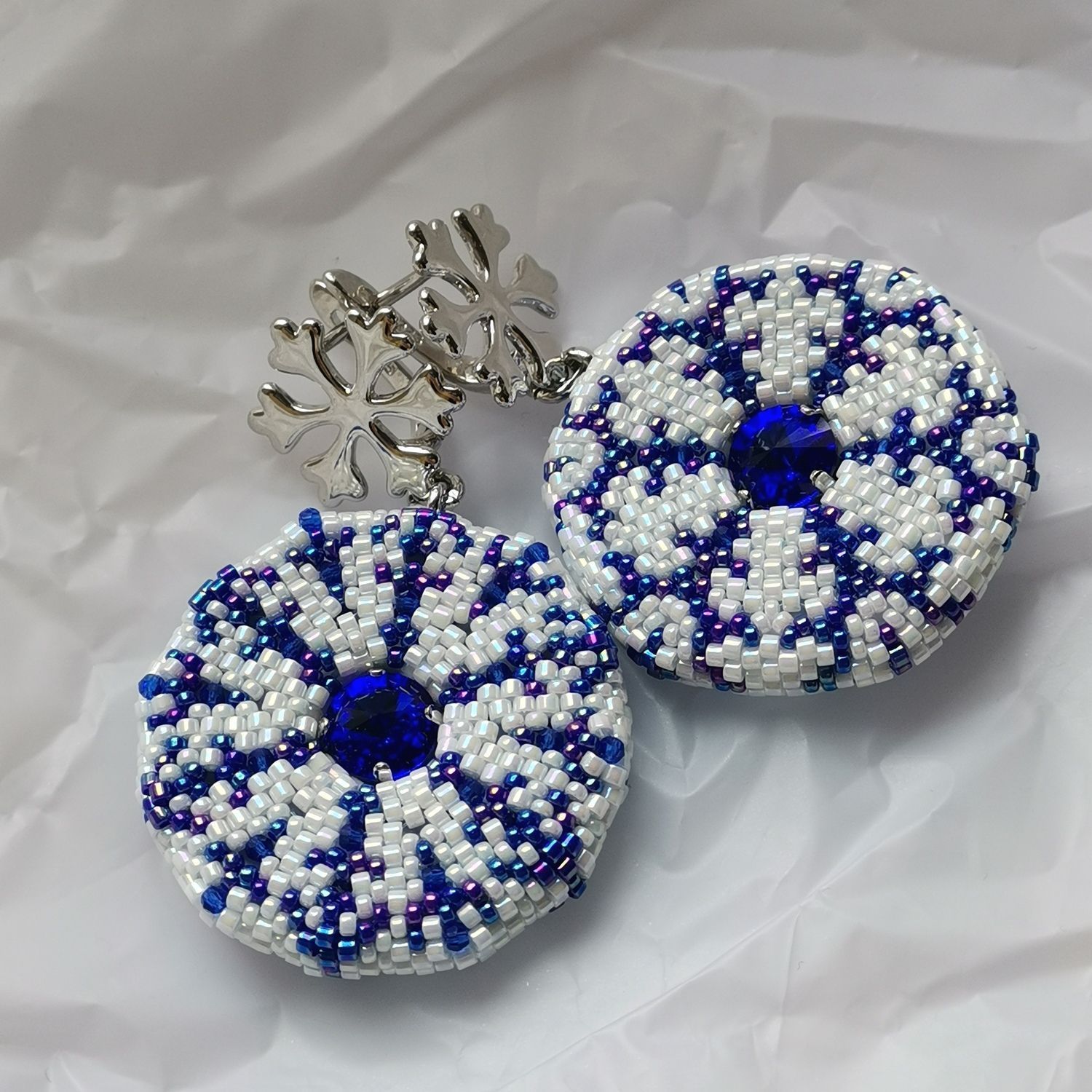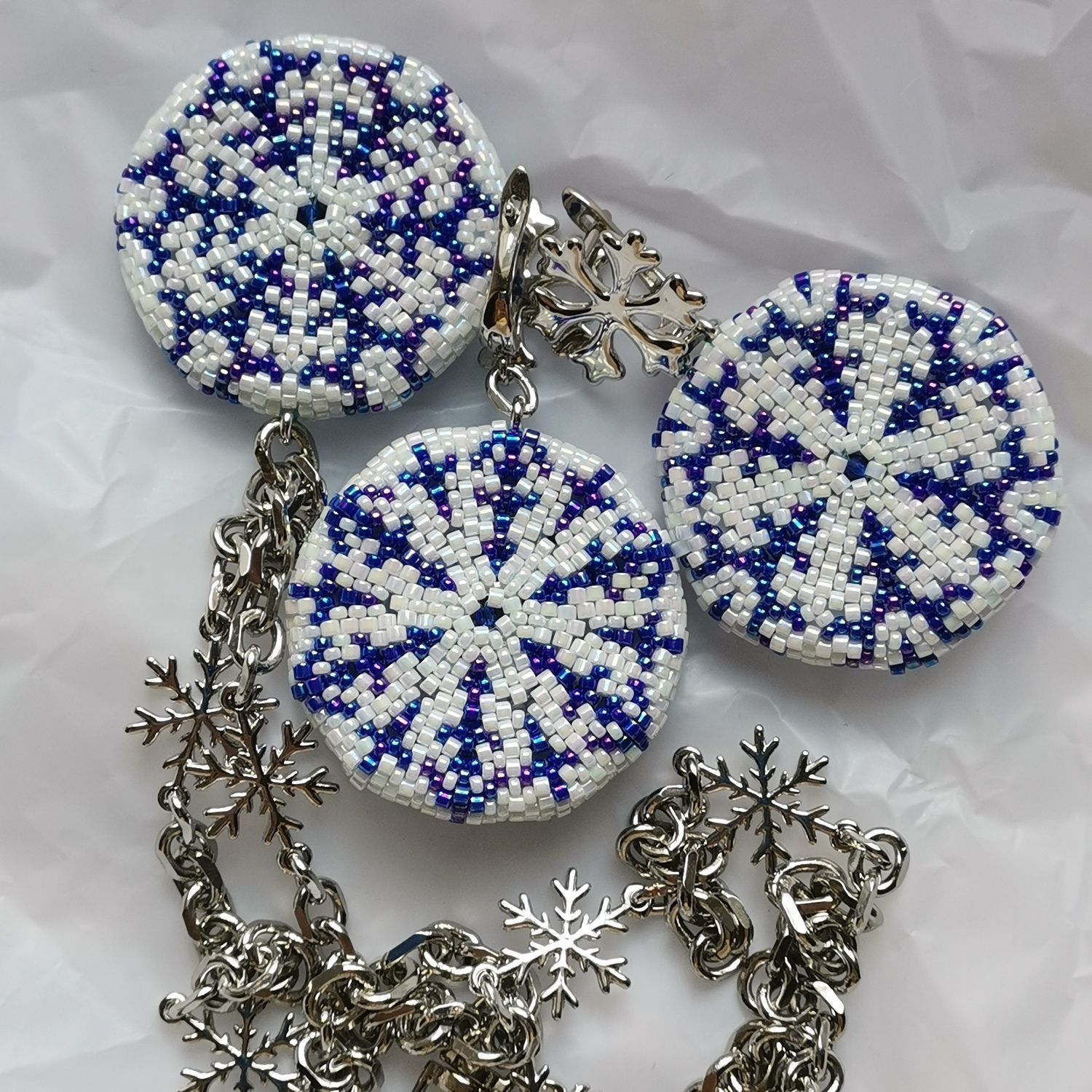 Серьги и подвеска на цепи "Праздничные снежинки"