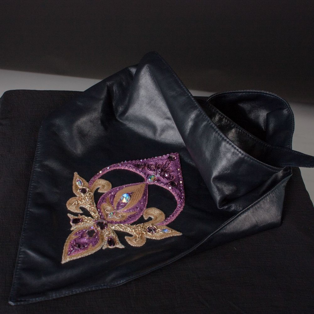 Именно таким я и вижу платок в современном мире. Дерзость кожи и яркость камней сплелись воедино. Это аксессуар, который говорит громче любых слов.