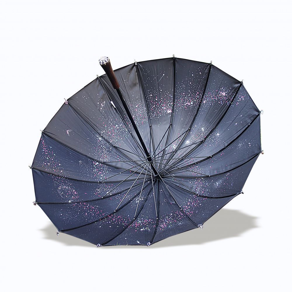 Ручная роспись внутренней части зонта из люминесцентных контурных красок. Зонт светиться в темноте словно находишься под звездным небом ночью.