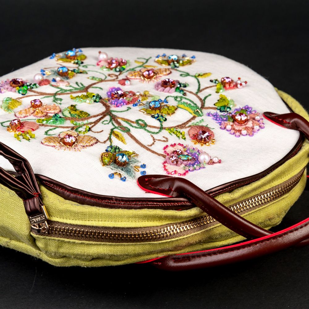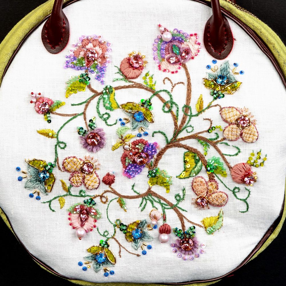 Сейчас модно выделяться – крупными украшениями, вещами ручной работы. И мне кажется, что моя сумочка сделанная полностью вручную , дополненная якобинской вышивкой в центре которой уютно расположились конкурсные кристаллы полностью соответствует современным тенденциям моды.