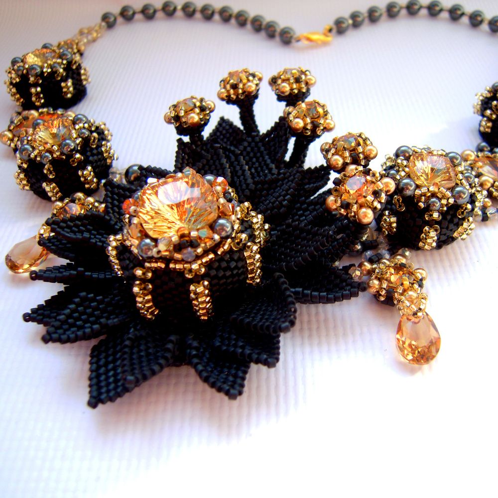 Черная, плодородная, богатая, жирная, кормящая, мать сыра земля. Она любит, растит и принимает нас. Она согревает нас своим теплом и освещает наш путь своим теплым светом. Распускается причудливыми цветами и волнует нашу фантазию. Она неиссякаемый источник вдохновения. Это колье посвящено земле, самой «обычной» земле, черному золоту, у нас под ногами. Мы привыкли ее топтать мало кто задумывается о ее реальной ценности. Мы пришли из нее и в нее вернемся. Как бы не была богата фантазия, любого мастера, земля всех переплюнула, она создает шедевры и включает новые грани сияния каждую долю секунды. Я очень хочу, что бы она как можно дольше наполняла наши сердца своим светом, а мы будем черпать от нее вдохновение.