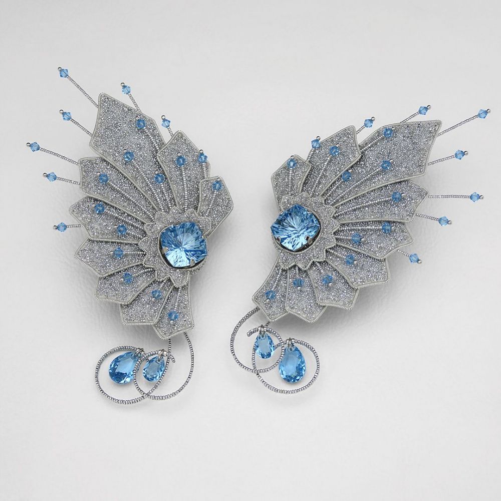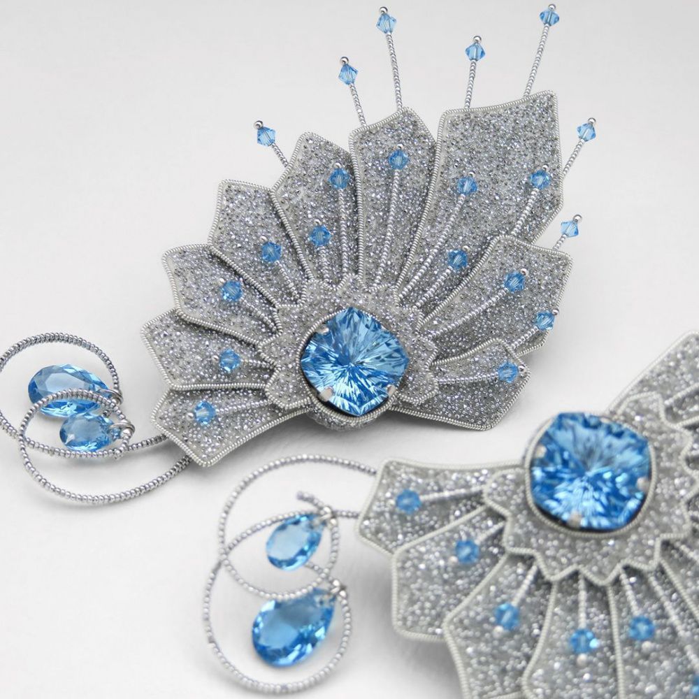 Форма украшения родилась из самого кристалла Mystic Square, именно его уникальная огранка подсказала, как этот "big bang" ("большой бабах") должен быть выражен в физической форме. В работе среди прочей продукции Swarovski использованы кристаллы цвета аквамарин, они – словно кусочек чистого безоблачного неба, как глоток свежего воздуха, как вера в то, что всё обязательно будет хорошо. И новое будущее непременно откроет нам огромный мир поразительных возможностей.