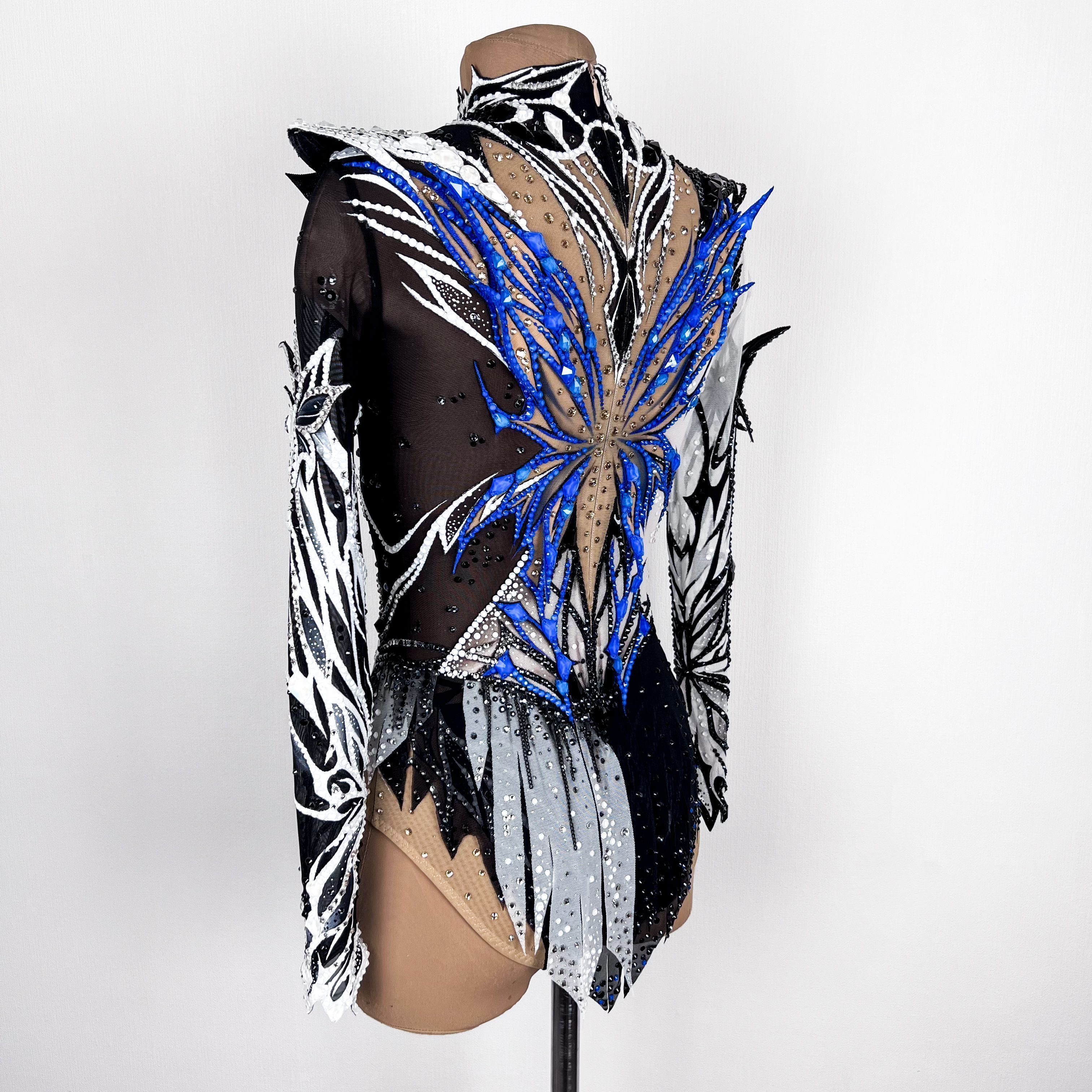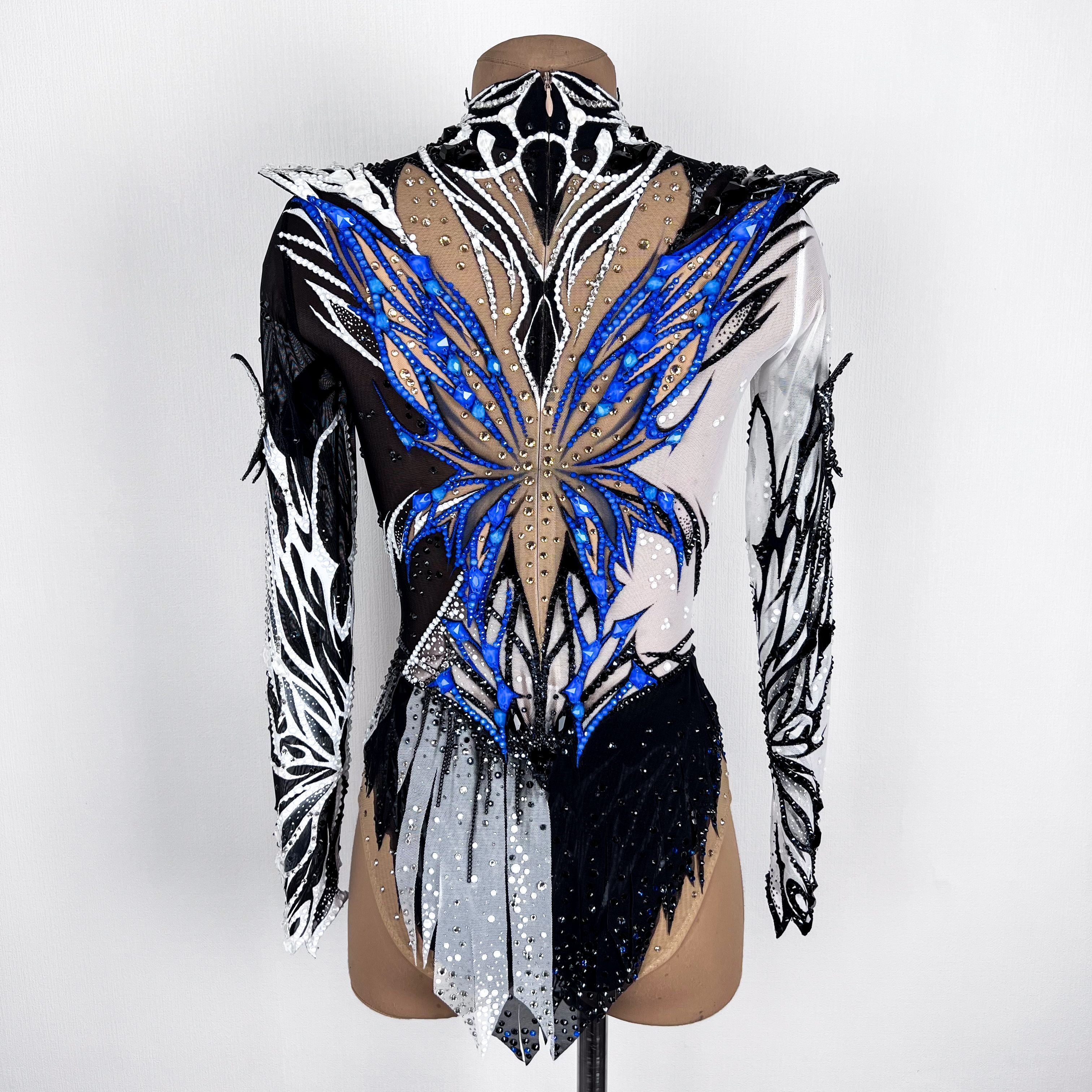 В работе я отражаю саму суть природы зазеркалья, сам принцип, как я его чувствую. Я использую приём инверсии цвета, одна часть композиции как бы "зеркалит" другую. Ярким элементом костюма является бабочка на спине королевского синего оттенка - единственная вспышка цвета в костюме.