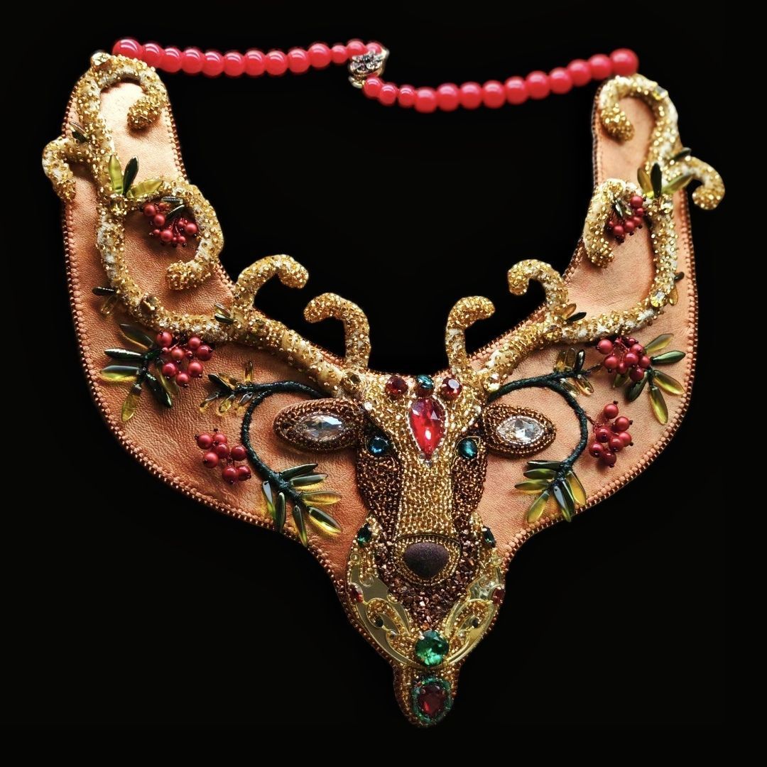 Колье "Хранитель волшебного леса" - это украшение, которое сочетает в себе гармонию природы и волшебство. Основная идея этого изделия заключается в сохранении уникальности и красоты природы, отраженной в сказочном образе оленя.