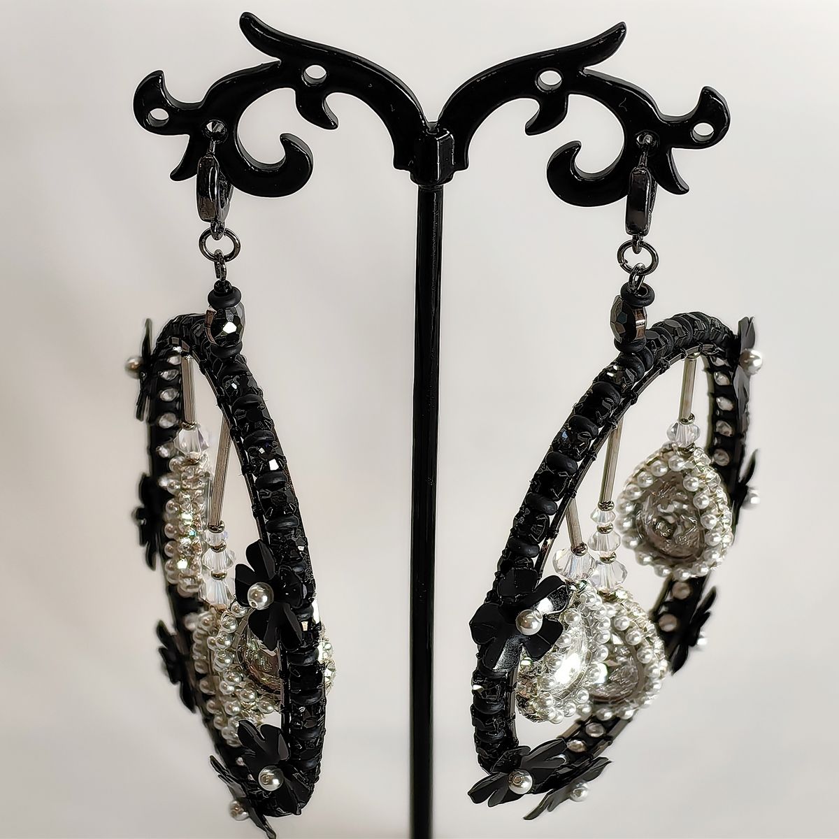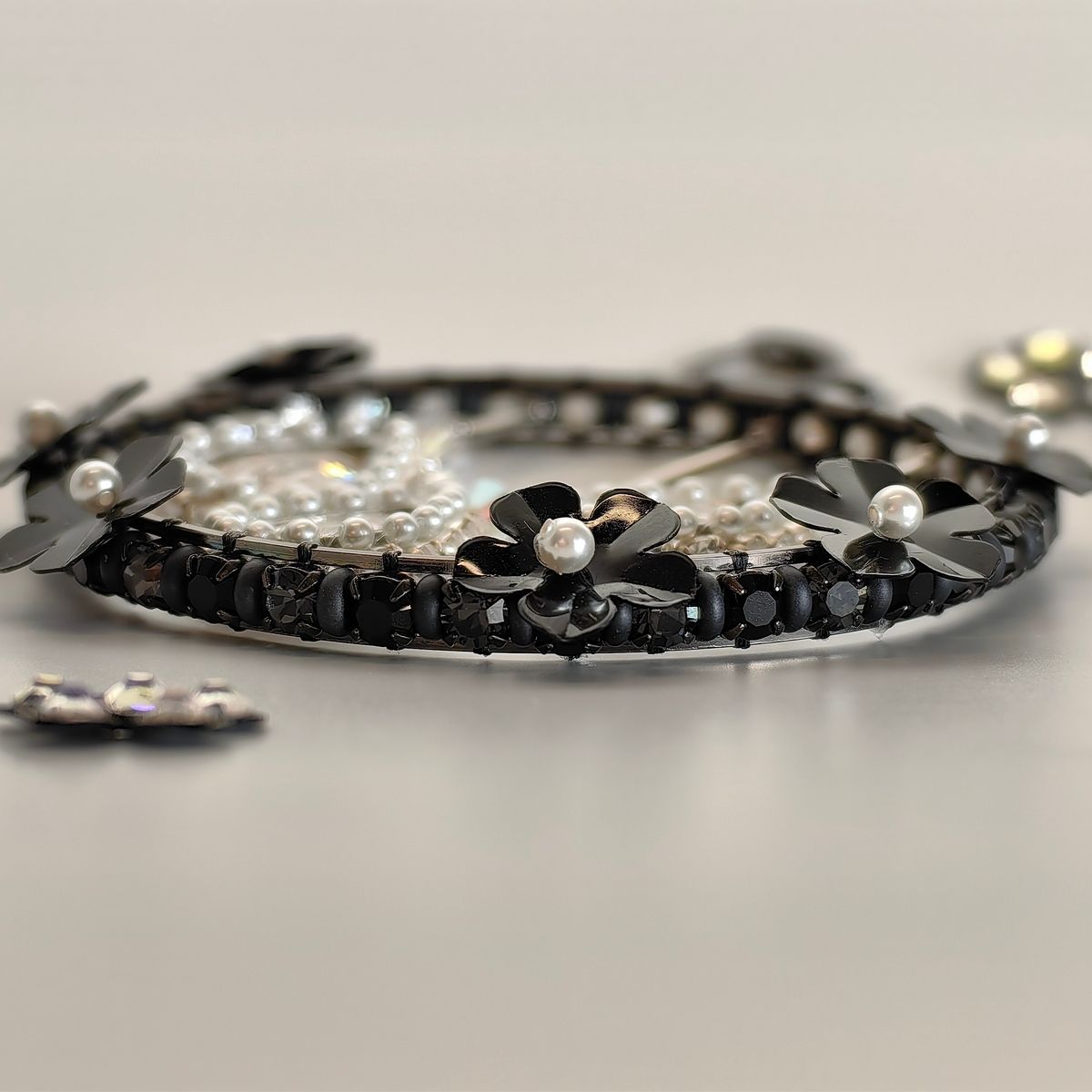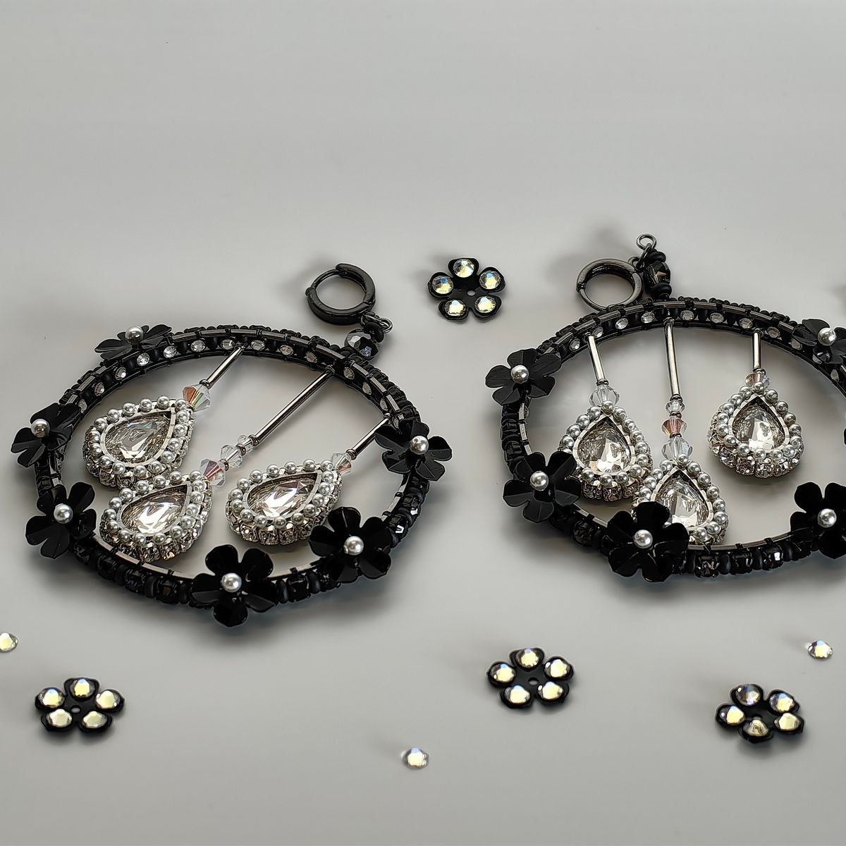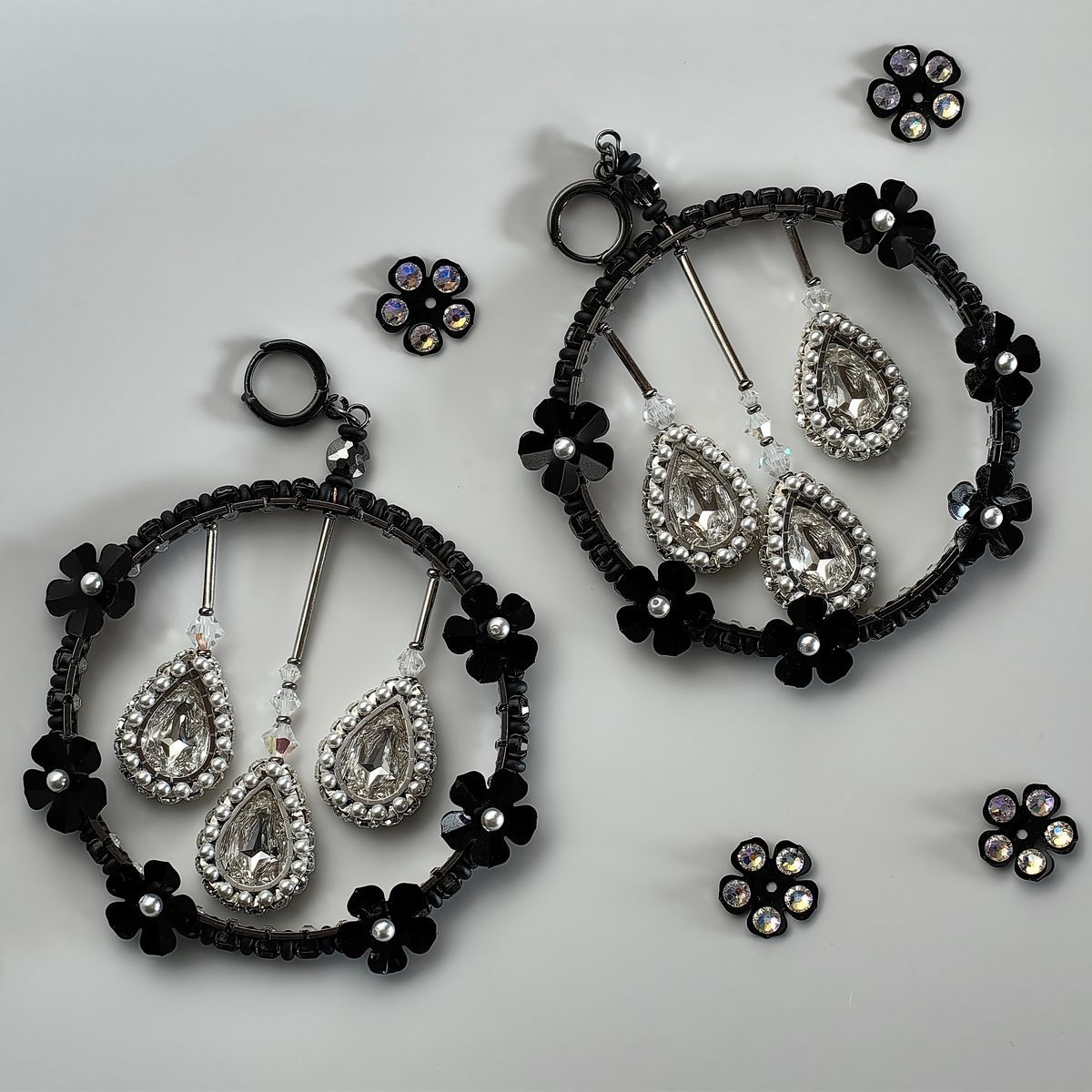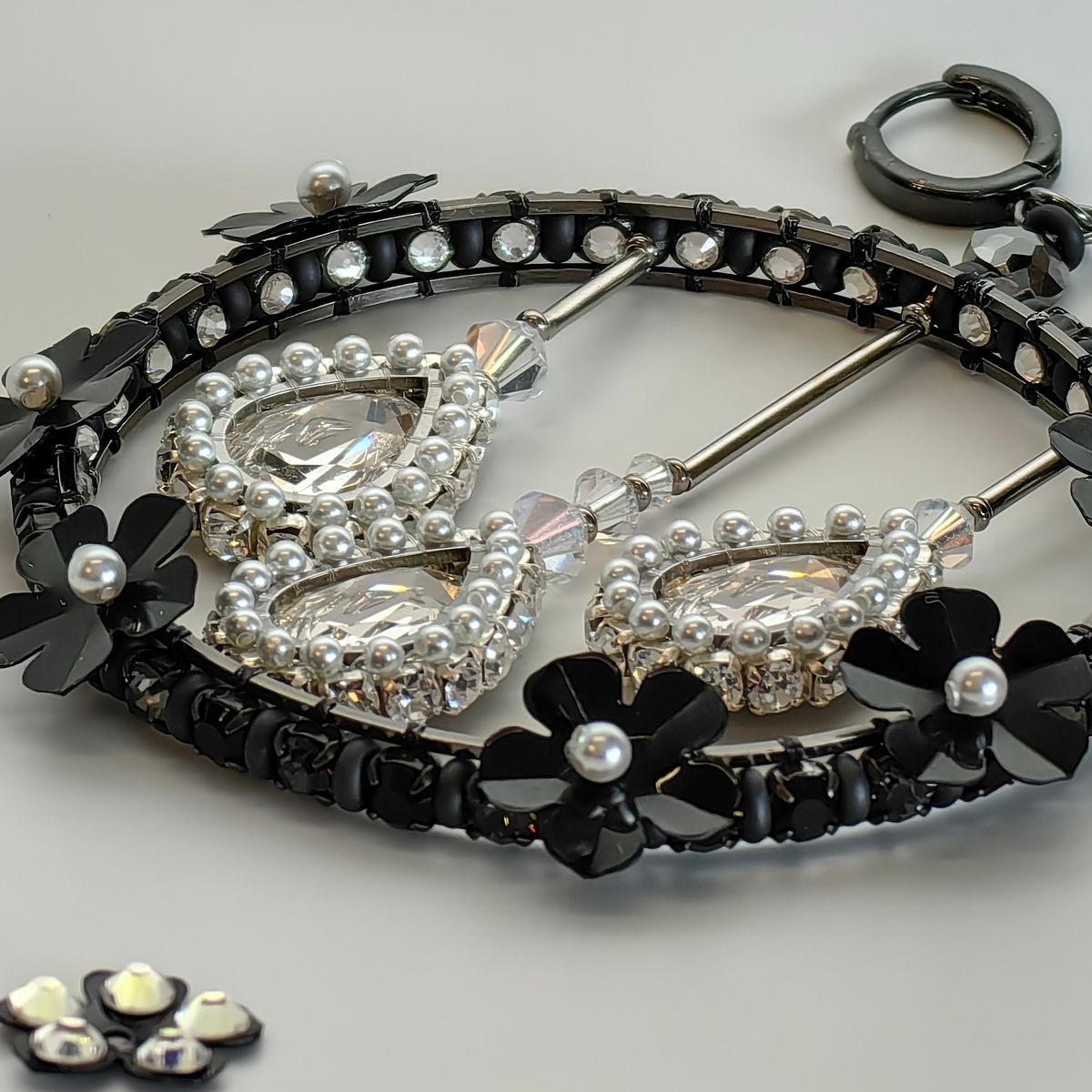 После того, как я прочитала название конкурса у меня сразу возникли ассоциации со сказкой Л. Кэрролла "Приключения Алисы в Стране Чудес". О том, как Алиса побежала вслед за белым кроликом и упала в нору, затем долго падала, оказалась на самом дне норы и в сказочной стране. Какие же чувства она пережила во время своего необычного приключения? Любопытство, страх, огорчение, радость, разочарование, обиду. Думаю вы уже догадались, что именно чувства легли в основу моей конкурсной работы. Круг из чёрных шатонов с бисером Toho Demi Round - это символ той самой норы, неизвестности, печали и страха. Прозрачные капли - это обида, слезы. Цветы с жемчугом - любопытство, тяга ко всему новому и необычному...