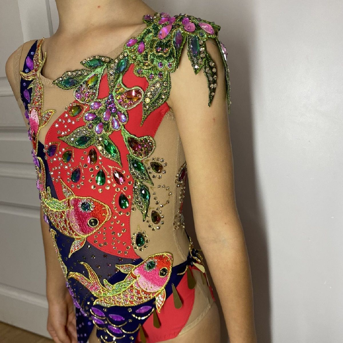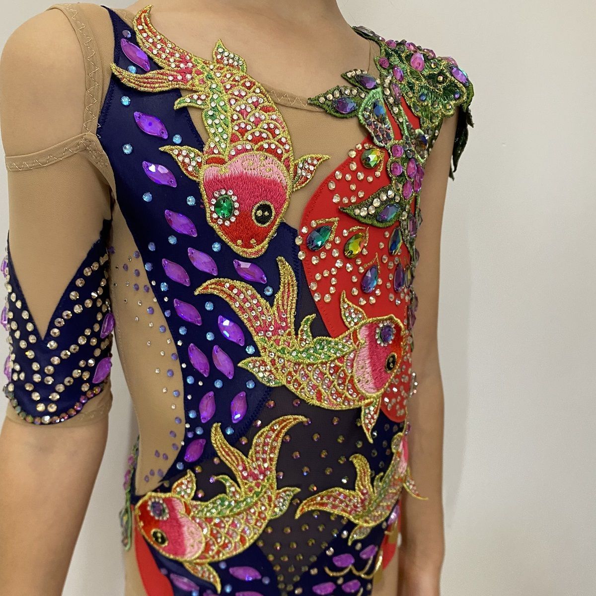 В разработке дизайна купальника я вдохновлялась японской культурой, их любовью к балансу и сдержанности. Моря и океаны самые мало изученные мест на земле. Моя работа отображает зазеркалье красного моря в котором обитают карпы кони, растут причудливые цветы и бушует морская стихия отражающаяся в кристаллах.