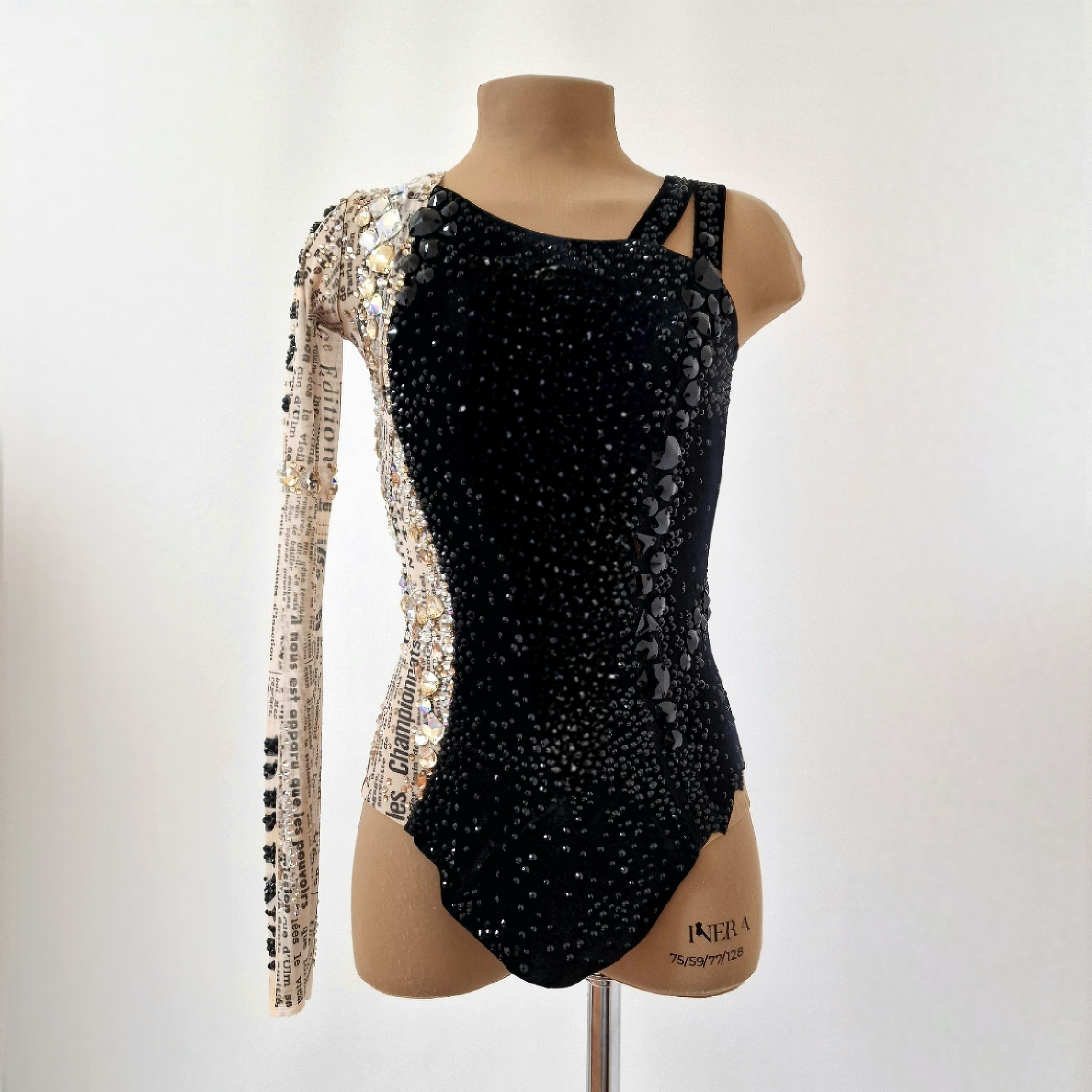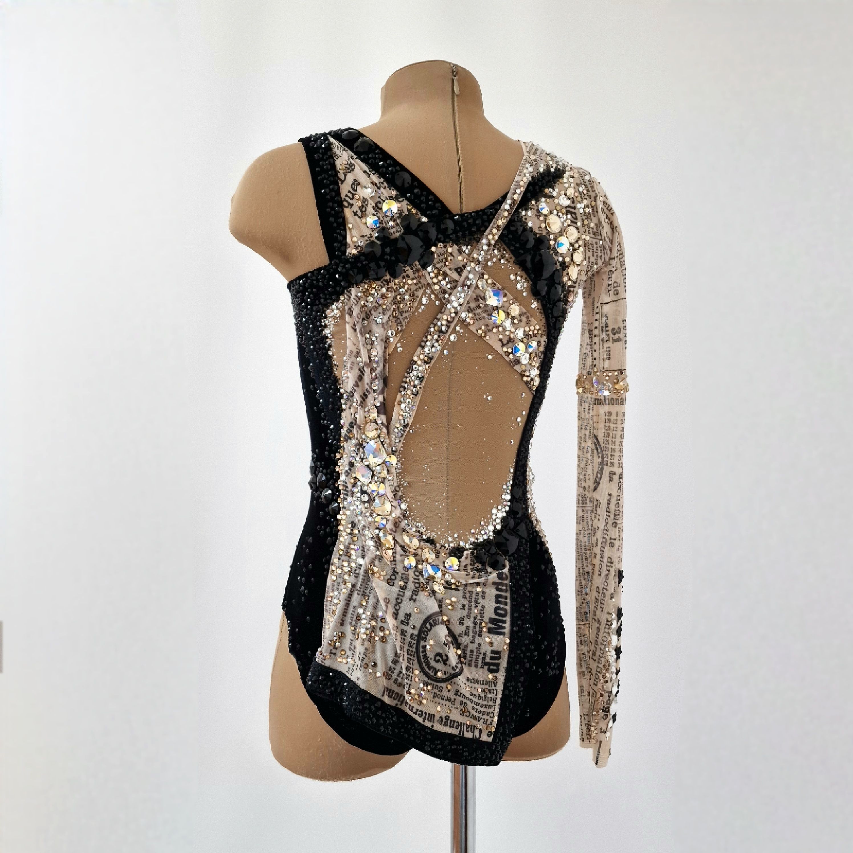 Купальник для художественной гимнастики "Мадемуазель Коко", создан по мотивам маленького чёрного платья - легенды мира моды. Он будто отражает жизнь знаменитой Габриель. С одной стороны - блеск, роскошь и признание, с другой - интриги, зависть и сплетни.