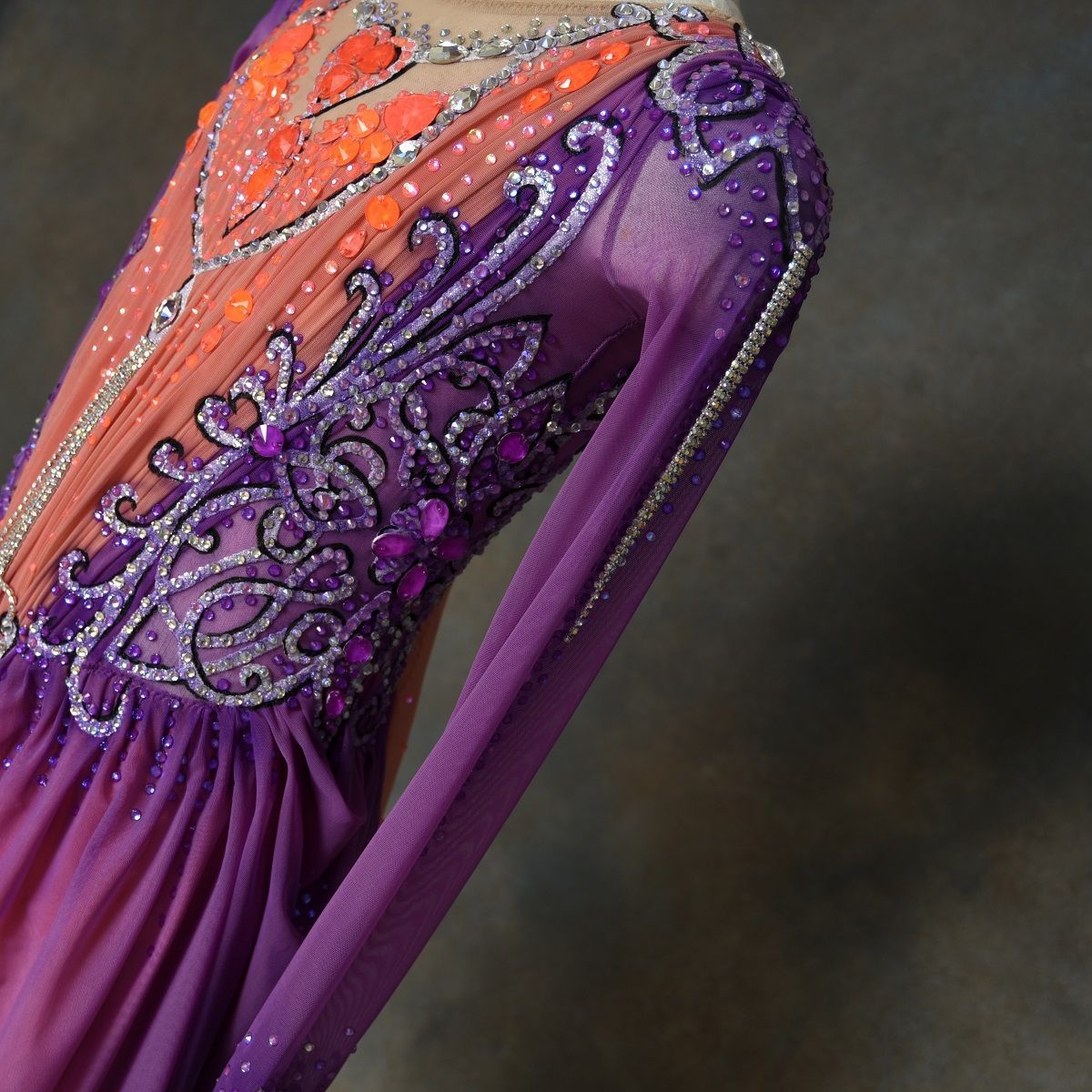 Яркие коралловые и фиолетовые оттенки так хорошо соединились с видоизмененными орнаментами художника Гагарина
