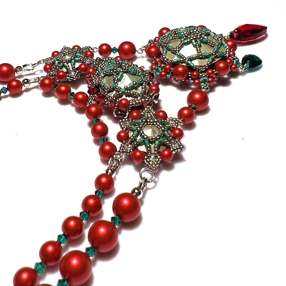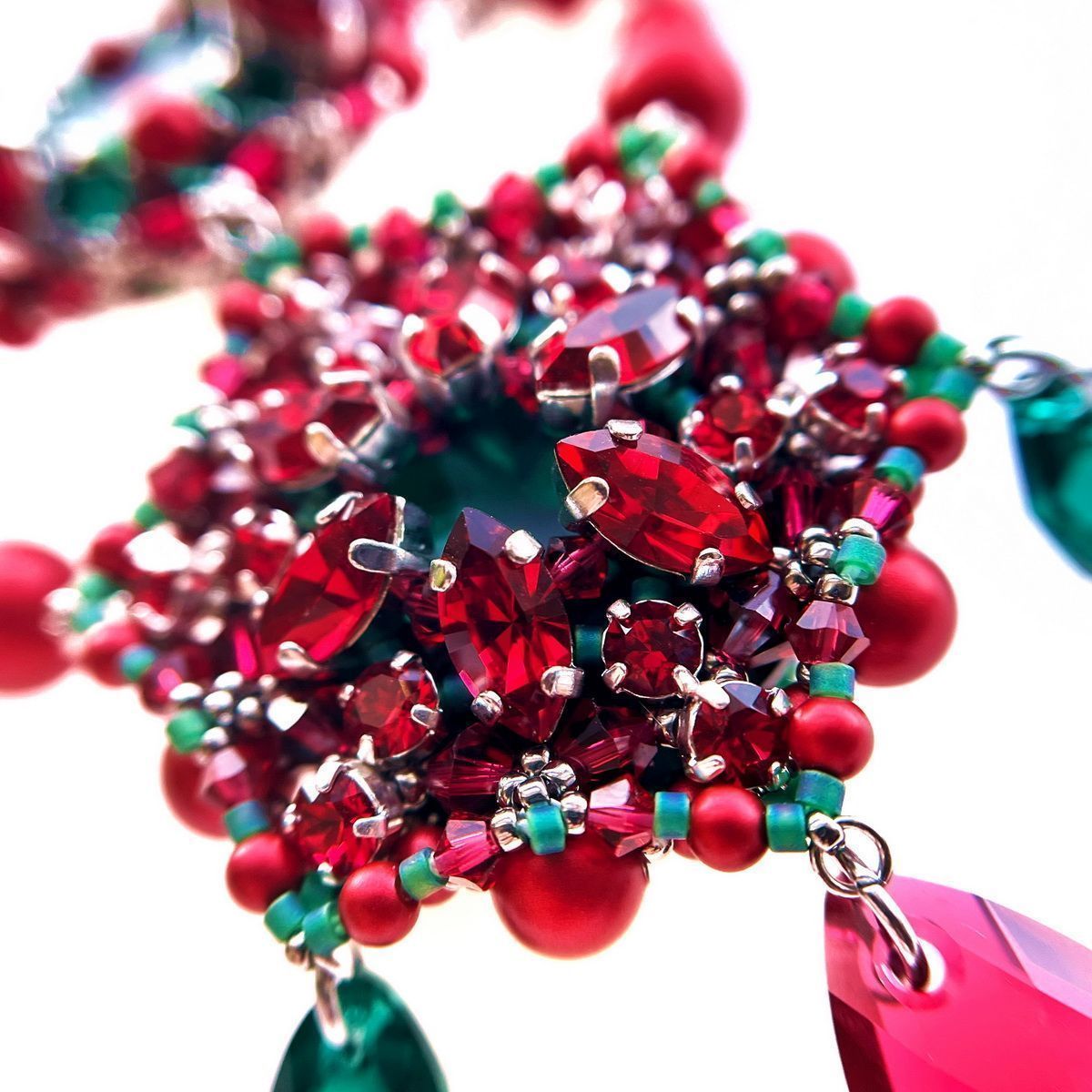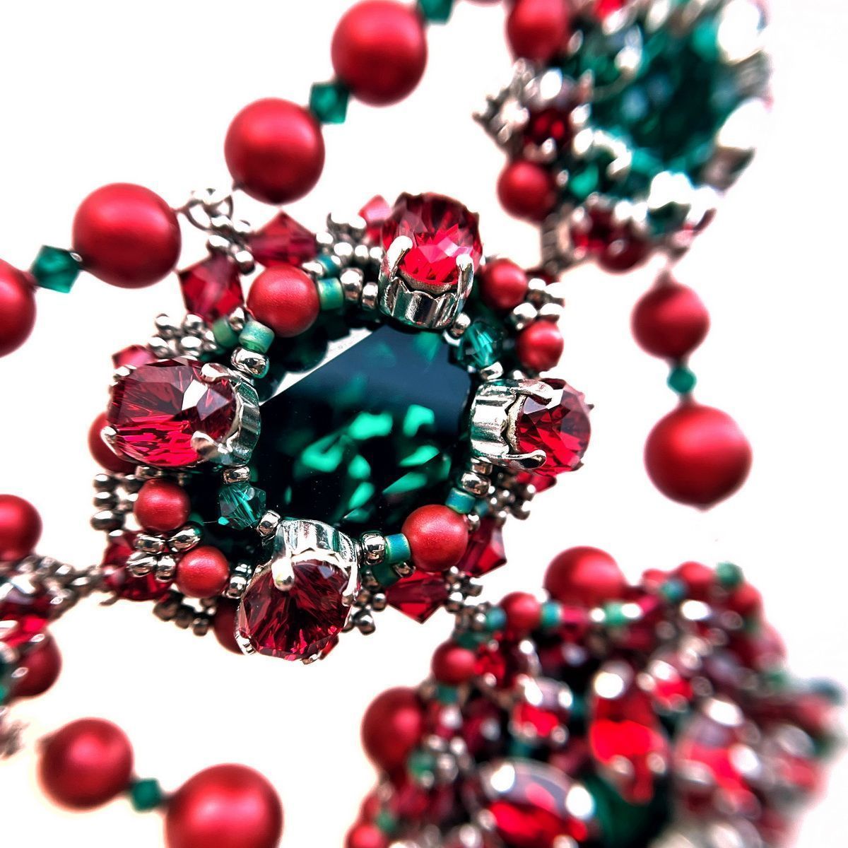 Конкурсное колье названо в честь рождественского цветка, который сопровождает меня на протяжении жизни. Все потому, что родилась в католическое рождество и с детства интересовалась традициями этого праздника. Так я узнала о пуансеттии, которая спустя время стала для меня талисманом и символом приближающихся праздников. Жемчуг цвета Rouge и элементы Scarlet и Emerald идеально передают оттенки рождественской звезды. Именно они вдохновили меня на создание традиционного цветка, позволяющего верить в лучшее будущее.