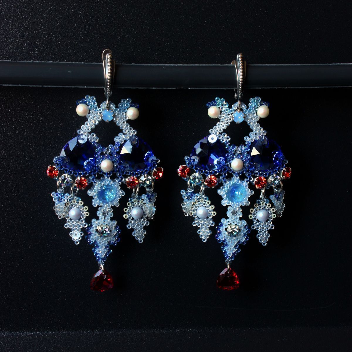 Это полностью плетёные серьги в не самой популярной (т.к. трудоемкой) технике, но именно она даёт лёгкость, воздушность, при этом большую прочность украшению.