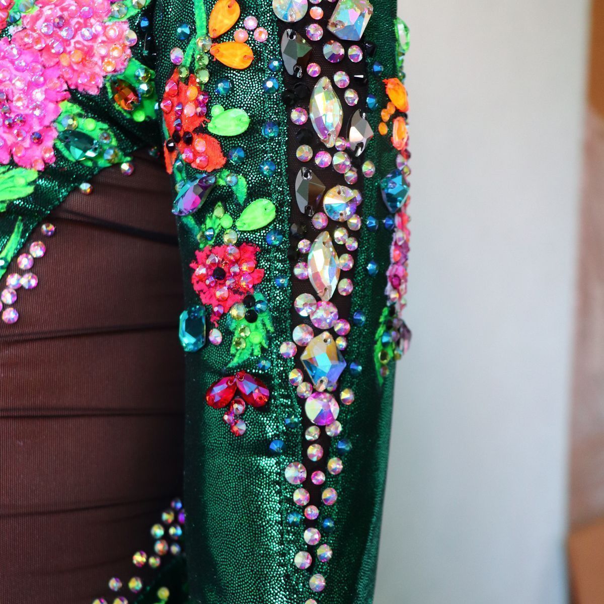 Конкурс дал возможность прикоснуться к ценному для всего человечества-традициям, понять их ценность для себя и способность трансформирования в будущем. Чувство прекрасного - это тоже традиция, без которой невозможно построить будущее, это чувство помогает двигаться вперед и создавать новое, вдохновляясь современными трендами и тенденциями, не забывая и применяя традиционные техники. Работа «Цветущий неоновый сад» совместила современный яркий стиль и русские народные мотивы традиционного Павлопосадского платка с использованием модных, ярких оттенков флуоресцентных страз, которые придают особое настроение работе. Настроение двигаться дальше к новым достижениям и победам, не останавливаться на достигнутом.