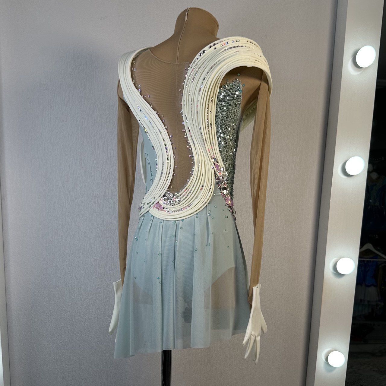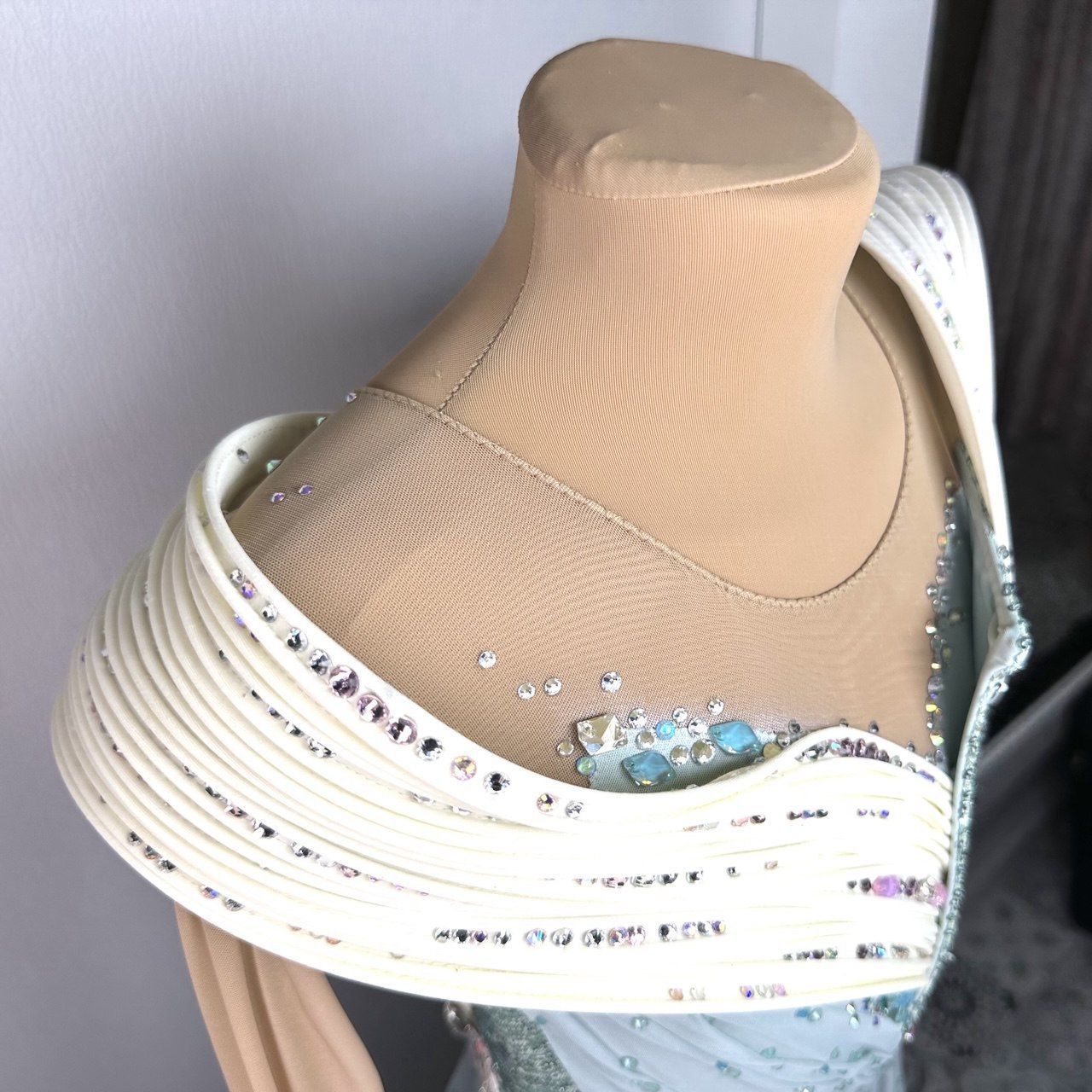 Мы хотели воплотить тонкий образ, сотканный из лёгкости и чистоты. Платье пастельных оттенков словно создано для парения в вальсе. Декоративные элементы подчёркивают хрупкость и изящество. Мы сочиняли оду Юности, перед которой открываются все двери, при взгляде на которую замирает дыхание...