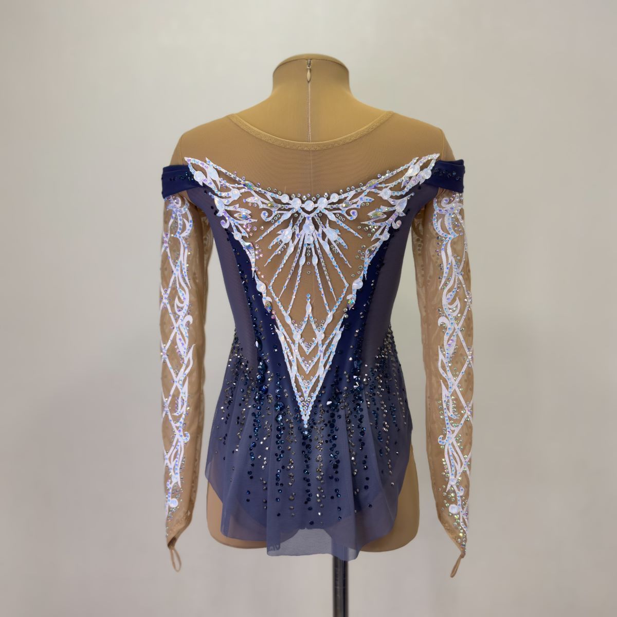 Но главная магия — в сиянии. Белые стразы и кристаллы, рассыпанные по всему купальнику, — это не просто украшения. Это отблески тысяч огней хрустальных люстр, это свет, который не гаснет в залах с тех самых пор, когда здесь кружились пары под звуки Штрауса.