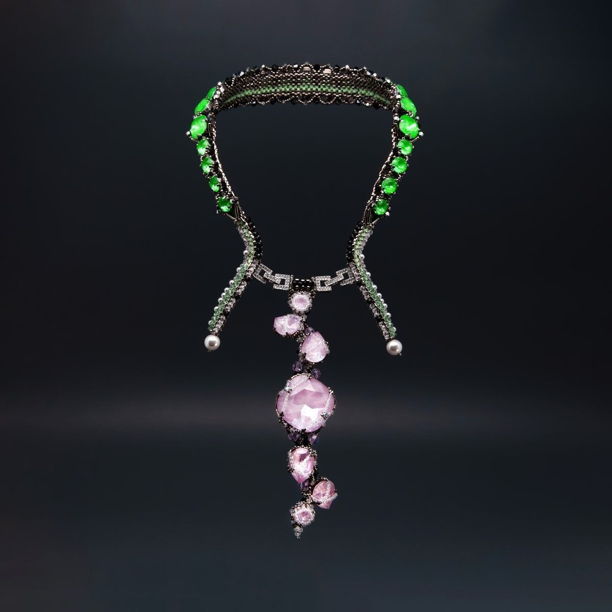 Ей досталось колье с неоновым энергокаркасом и довольно необычным центральным модулем. Оно обжигающе легло на кожу, смыкаясь монолитом. Вскоре эйфория вечера утонула в нарастающей музыке, которая вдруг стала оглушающе вязкой. Лица вокруг смешались в один акварельный подтёк, но тело двигалось свободно. И... бесконтрольно?