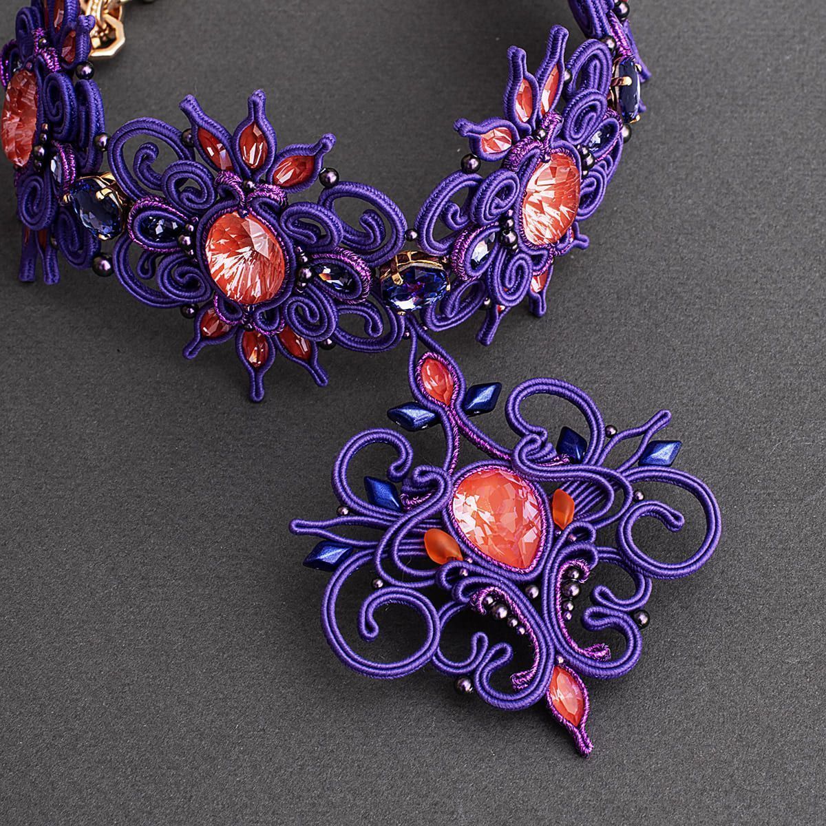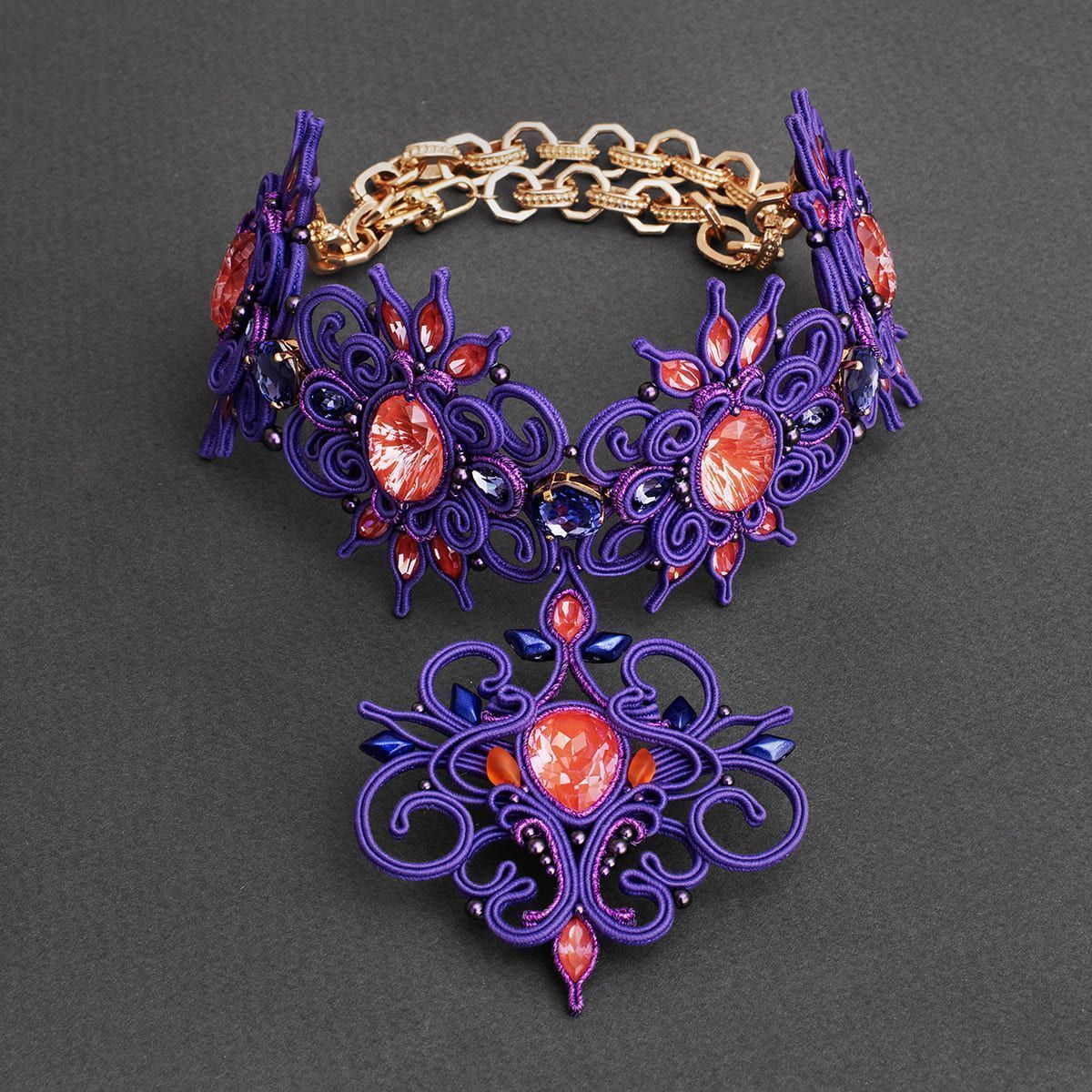 красоту подчёркивают завитки сутажа в поистине королевском фиолетовом цвете,