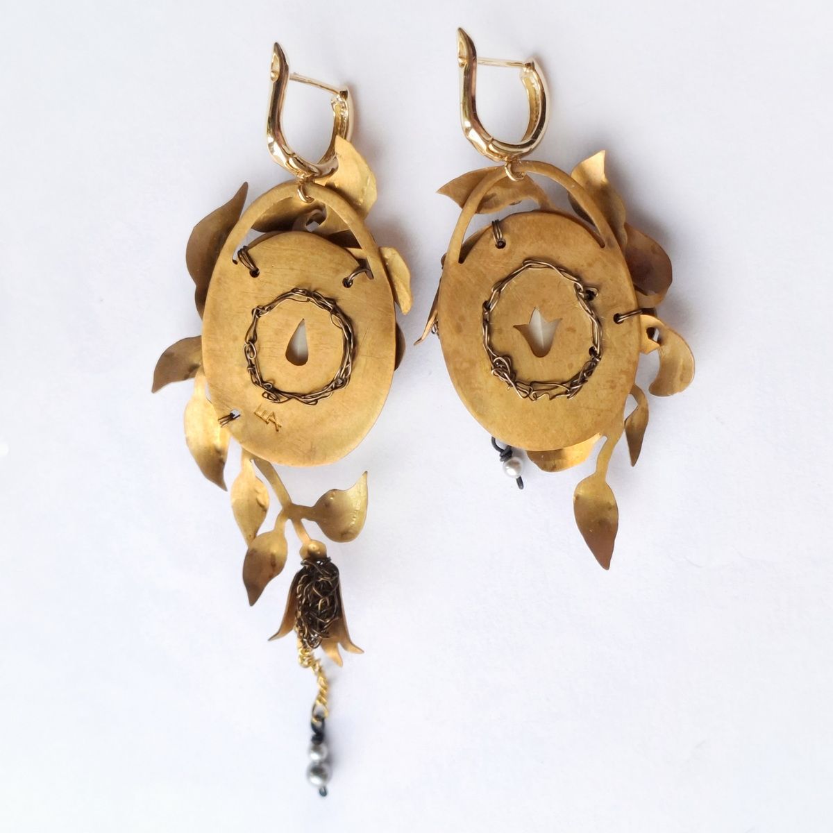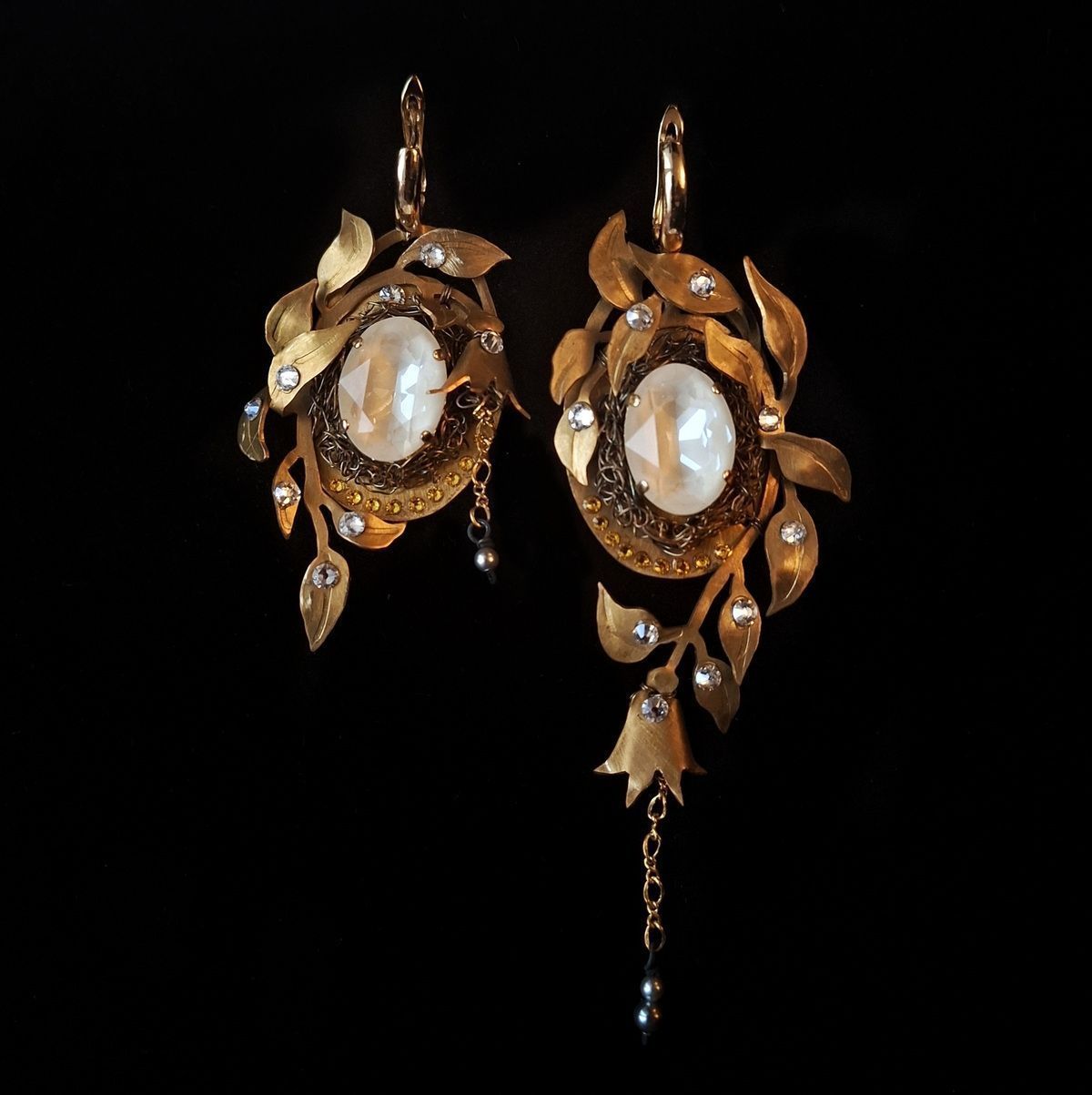 Асимметричные, притягивающие взгляд. Декоративные композиции на правой и левой серьге не повторяются, но дополняют друг друга. Совершенная классика природы, никогда не выходящая из моды.